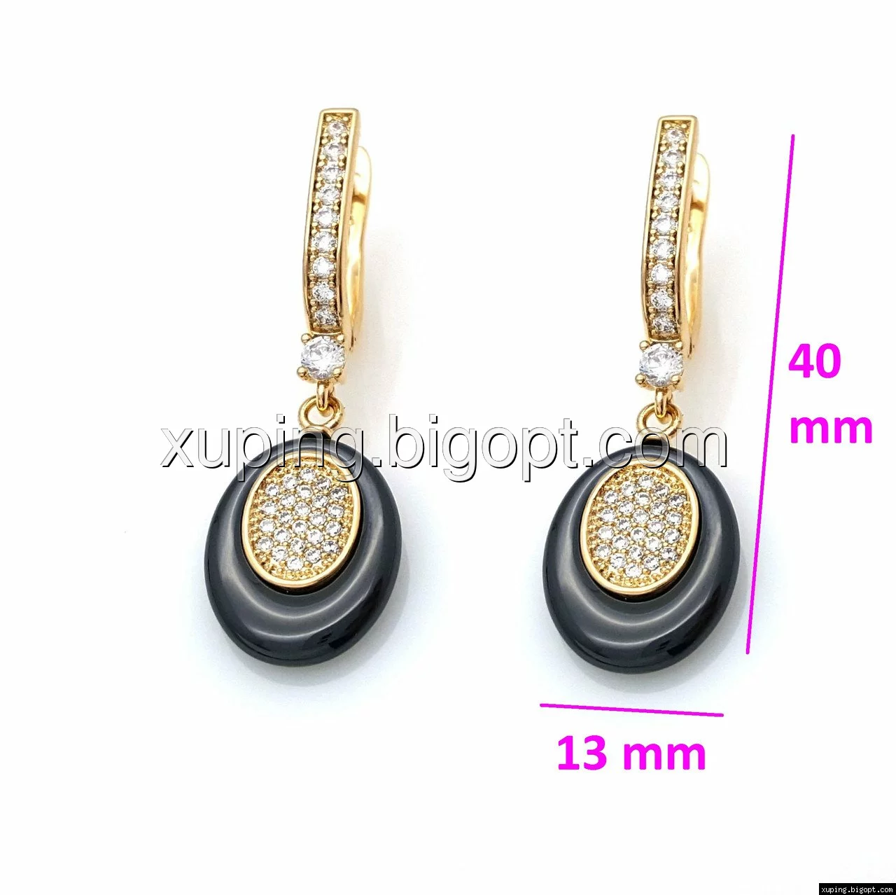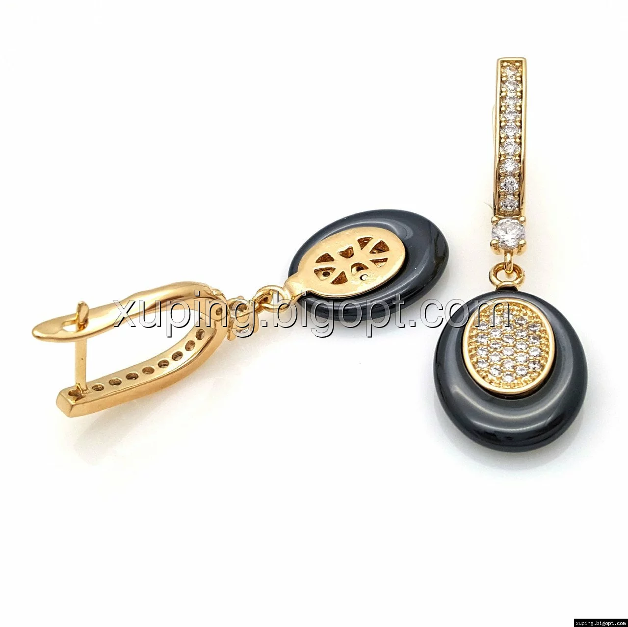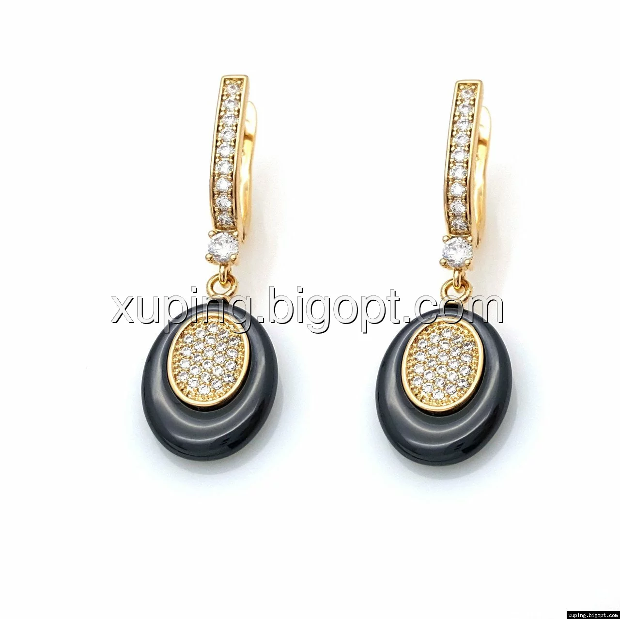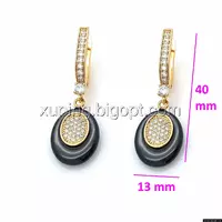 Серьги Овал с керамики, с россыпью циркония, англ.замок, позолота