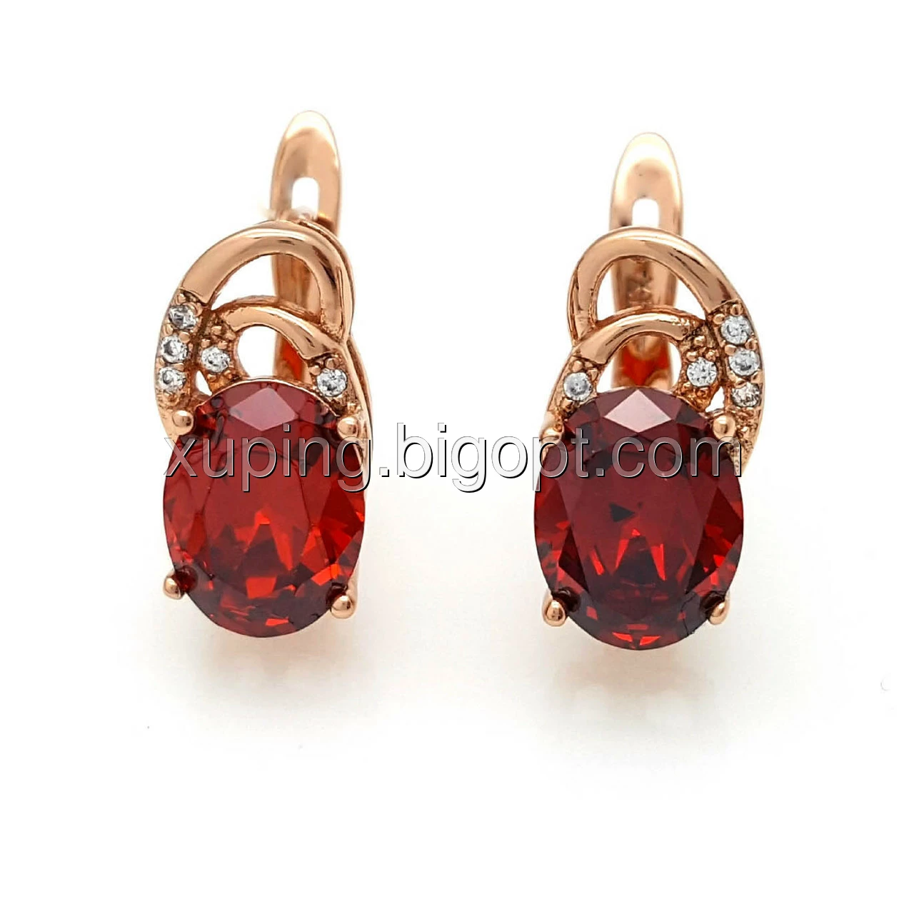 Сережки Овал з червоним цирконієм, англ.замок, позолота Xuping, 14К