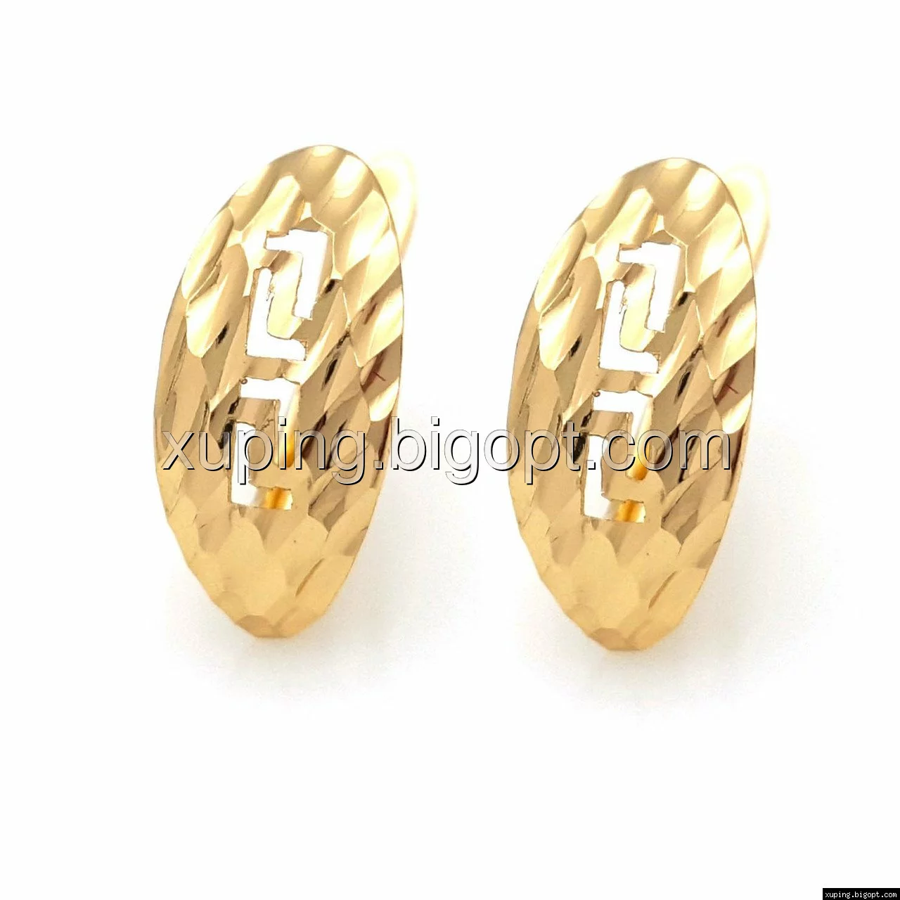 Серьги Овал с резьбой, без камней, англ.замок, позолота Xuping