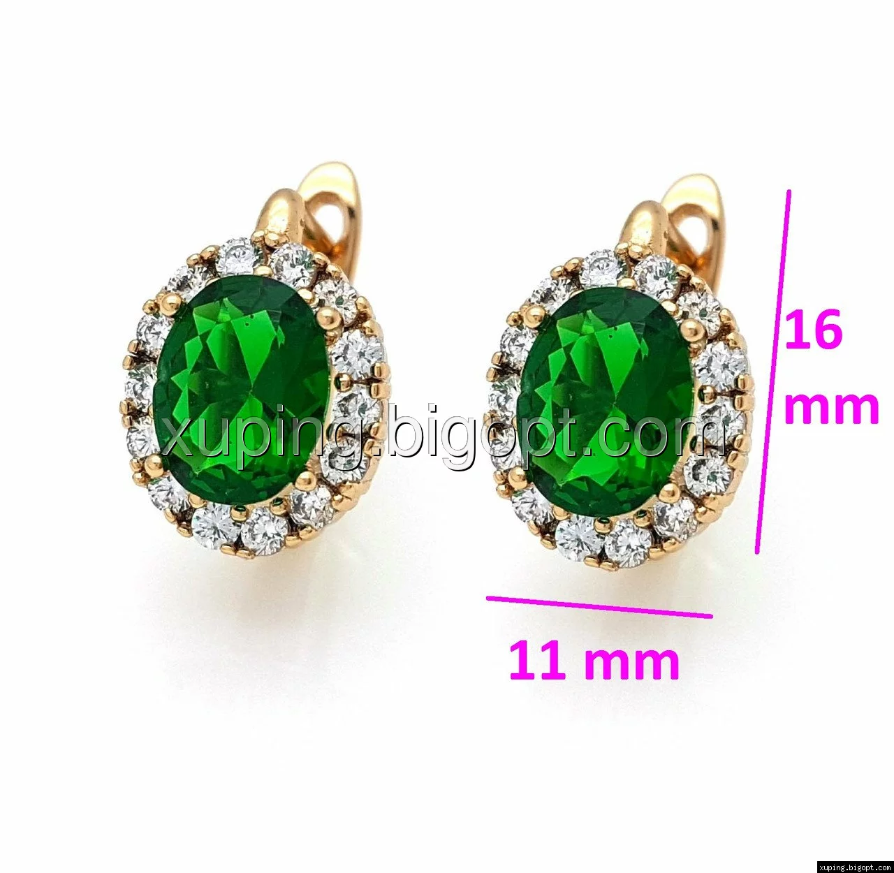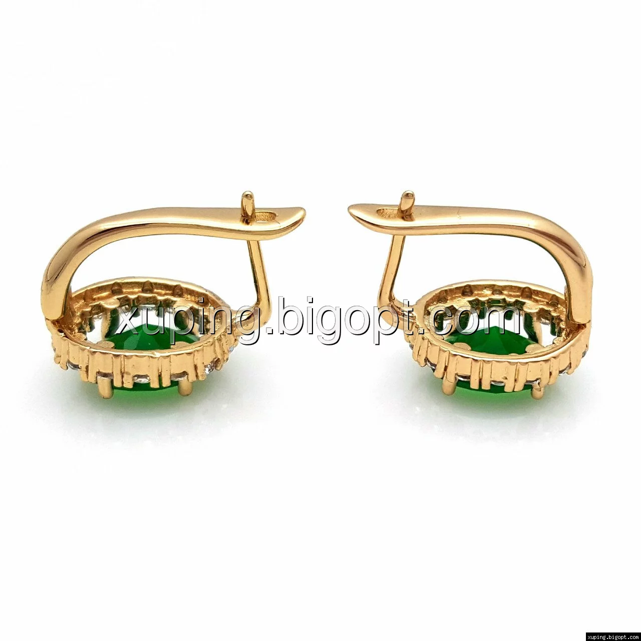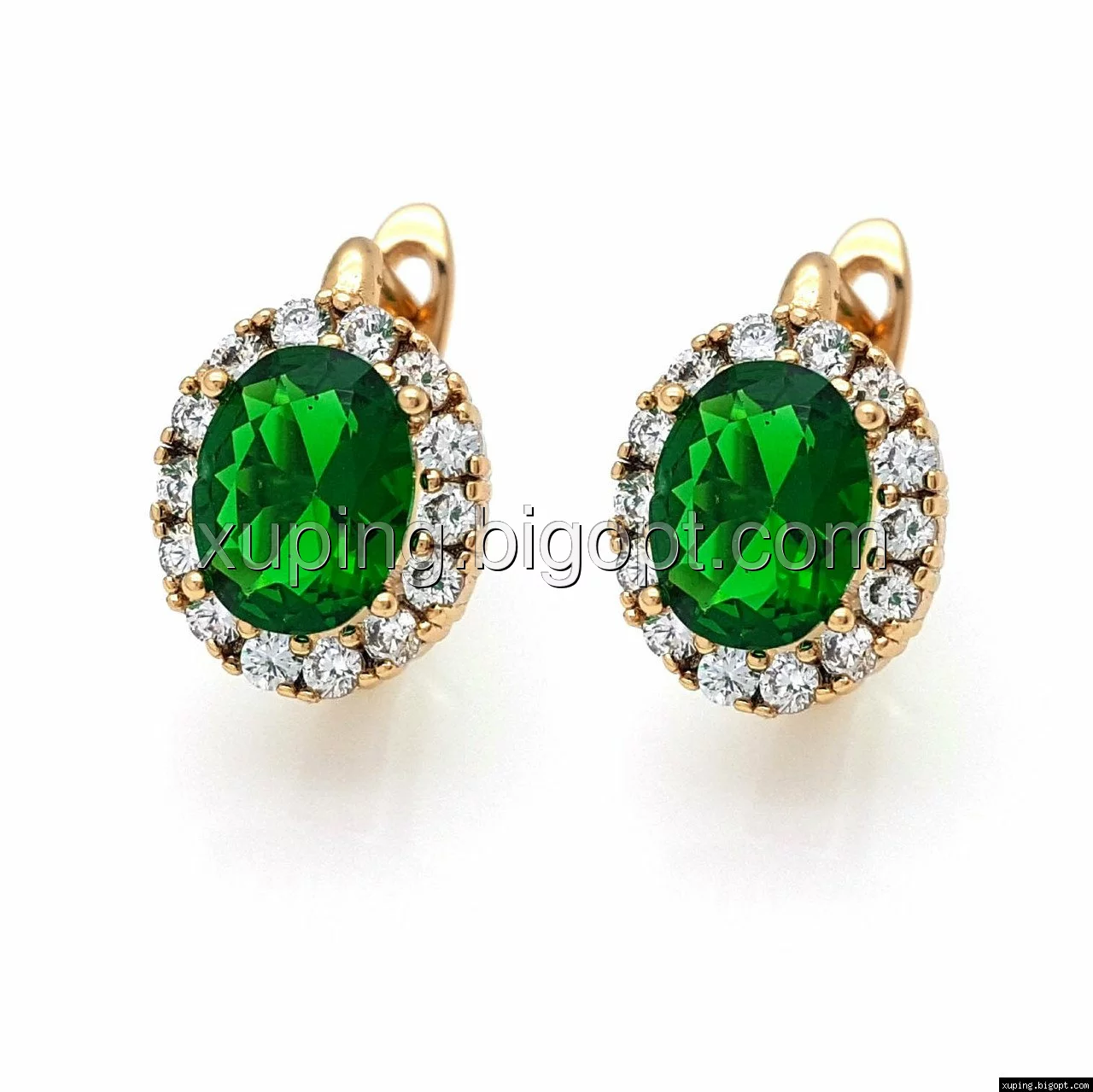 Серьги Овал с зеленым цирконием, англ.замок позолота Xuping