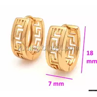 Серьги выполнены из медицинского сплава на основе латуни с добавлением легирующих элементов, с целью улучшения каких-либо его свойств, например коррозионной стойкости или прочности. Такой сплав не вызывает аллергии, не вступает в реакцию с потом человека, не меняет свои свойства под воздействием соленой воды и солнца. Поверхность сережек покрыта золотом 18 карата.