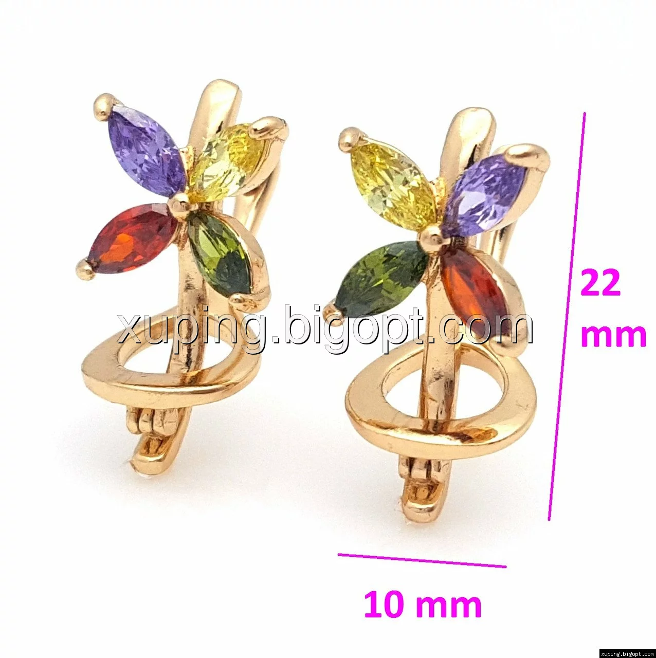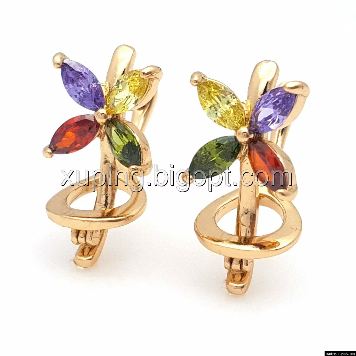 Серьги позолота Xuping 704756, Бабочка с разноцветным цирконием, англ.замок