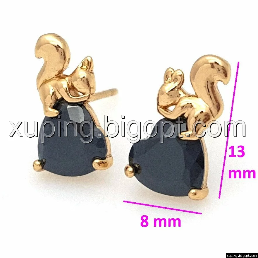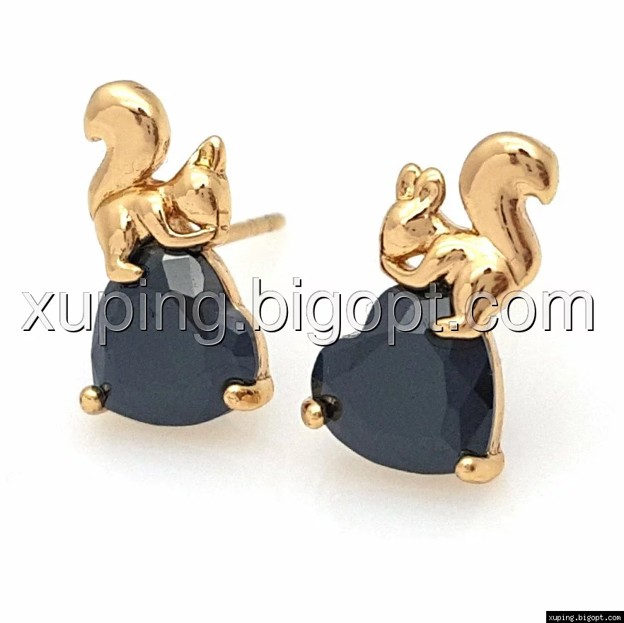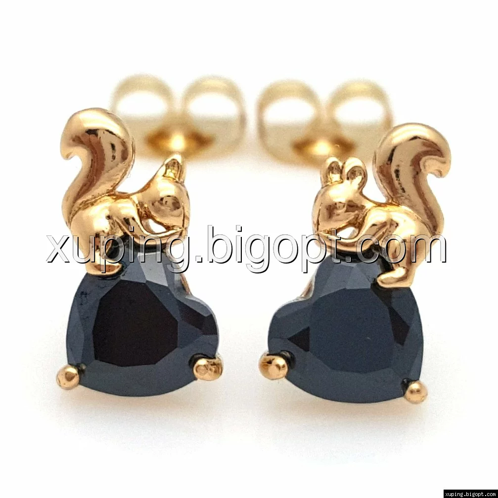 Серьги позолота Xuping 704765, гвоздики Белочка и черное Сердце с циркония