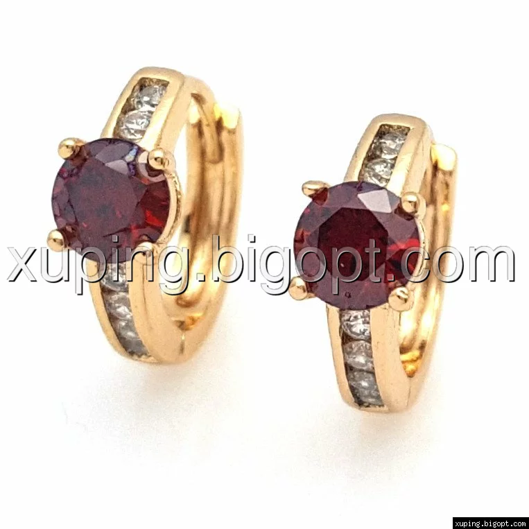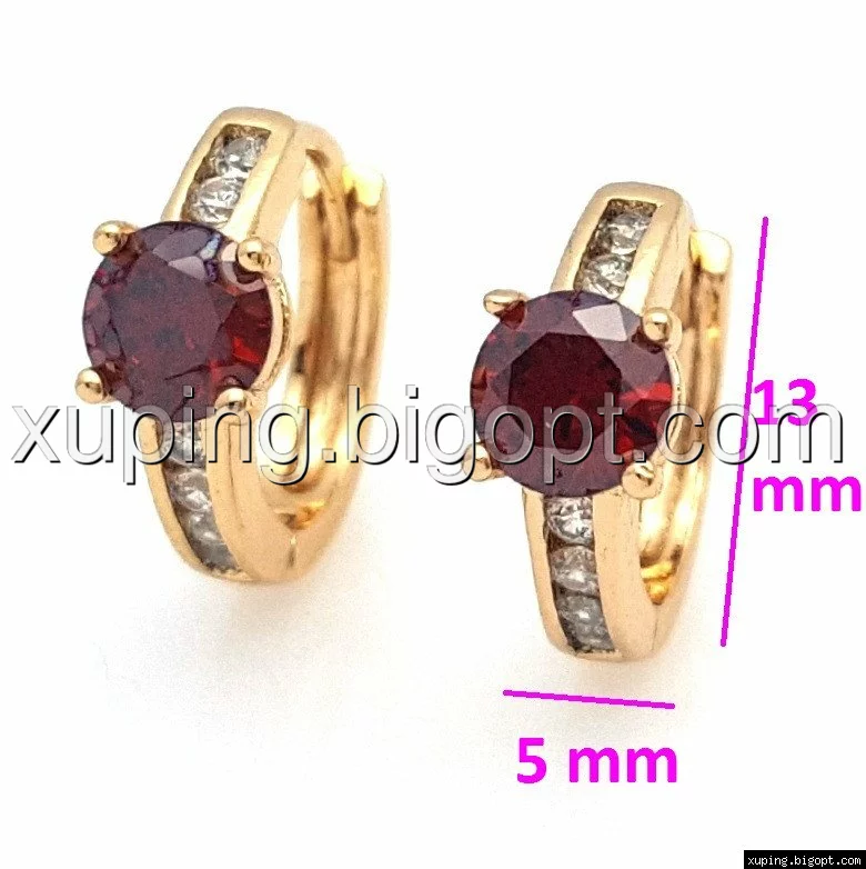 Серьги позолота Xuping 704768, Колечка с красным камнем