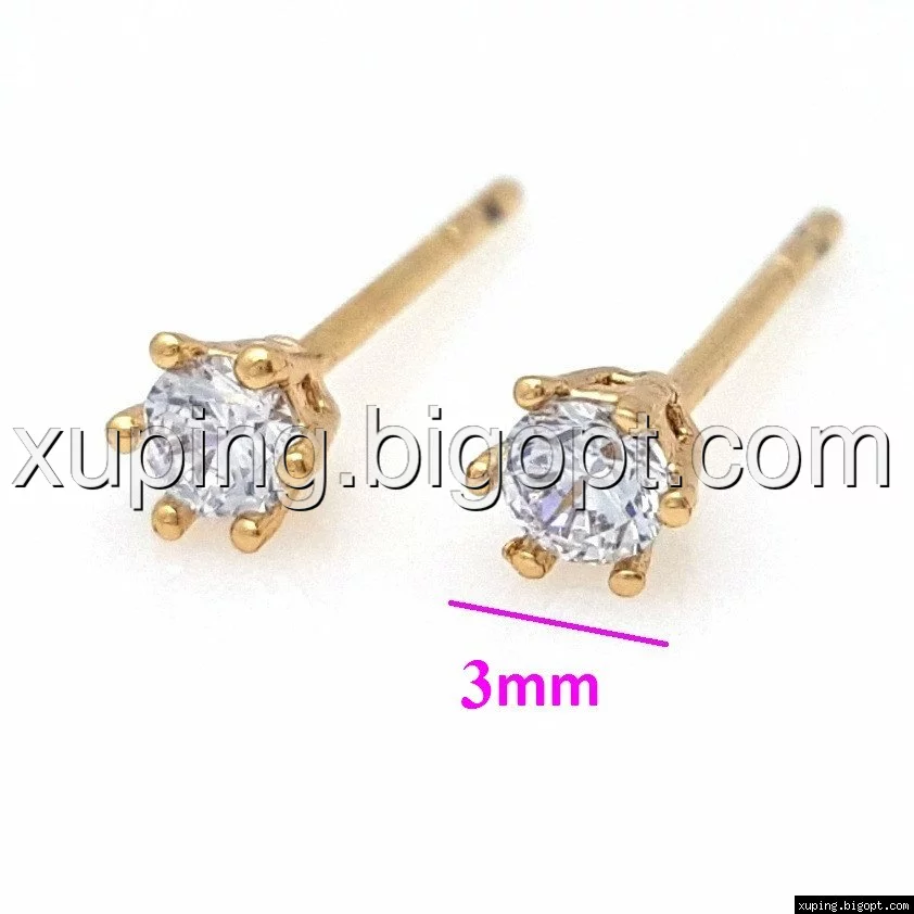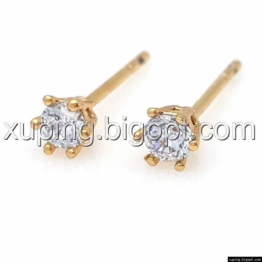 Серьги позолота Xuping 704783, Гвоздики с цирконием, крепление 6 лапок