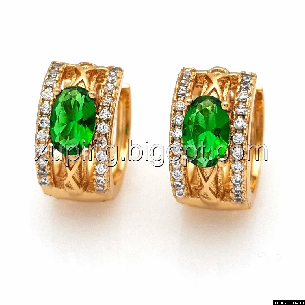 Серьги позолота Xuping, Ажурные Колечка с зеленым камней