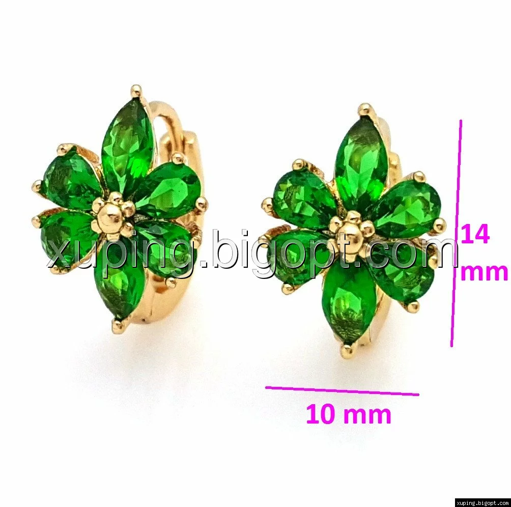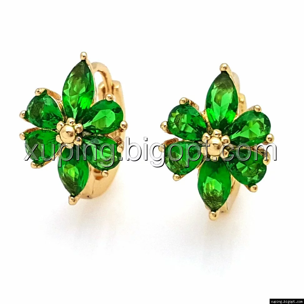 Серьги позолота Xuping, Волшебный Цветок, с зеленым цирконием