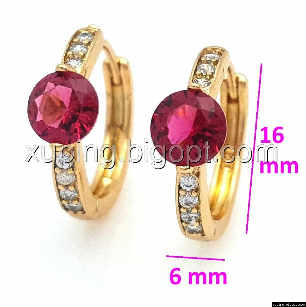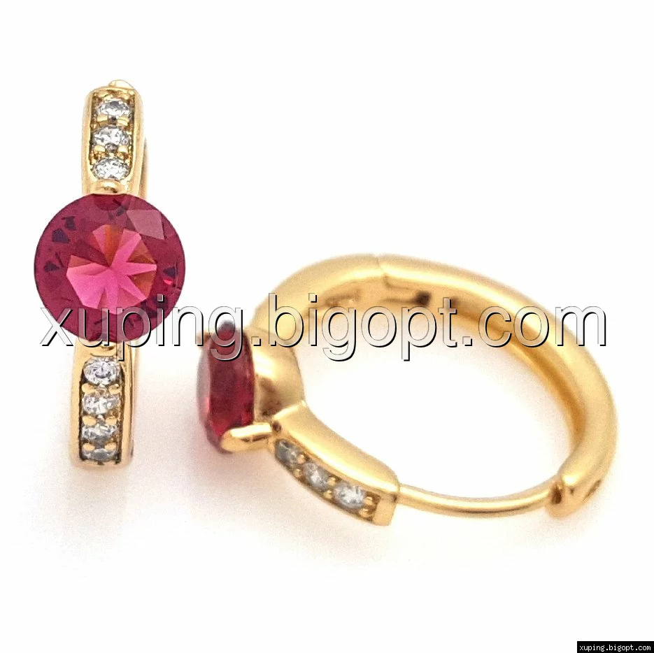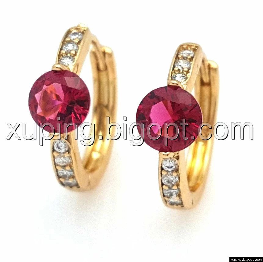 Серьги позолоченные 704775, Колечка с рубиновым цирконием, Xuping