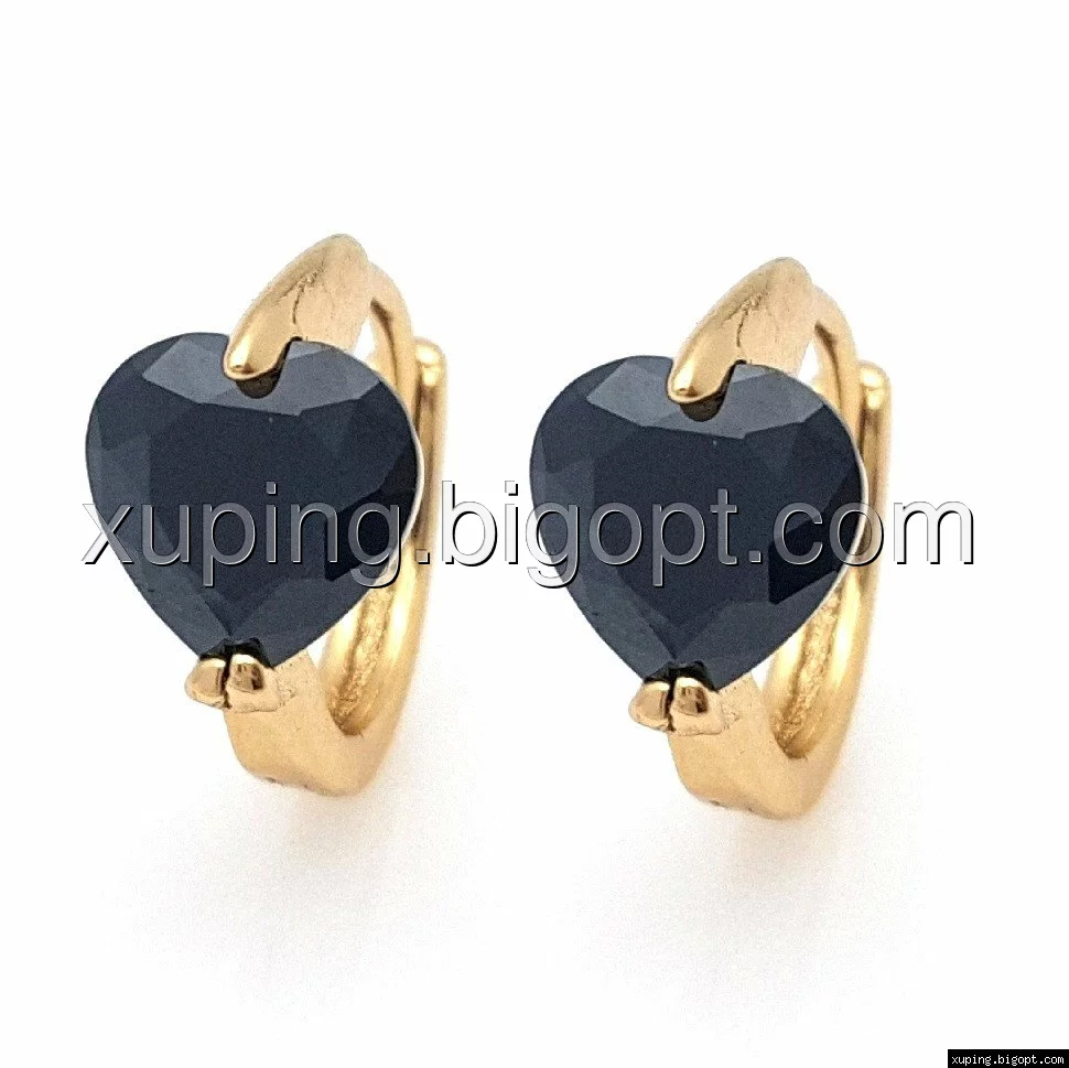 Серьги позолоченные 704780, "Черное Сердце", с циркония