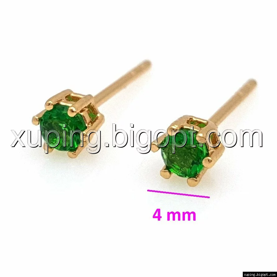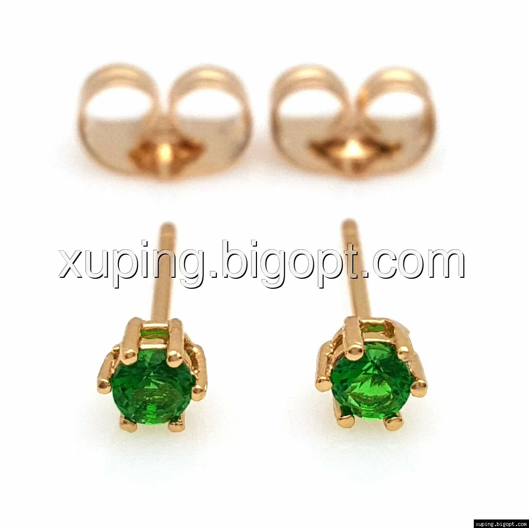 Серьги позолоченные 704785, гвоздики с зеленым цирконием, Xuping