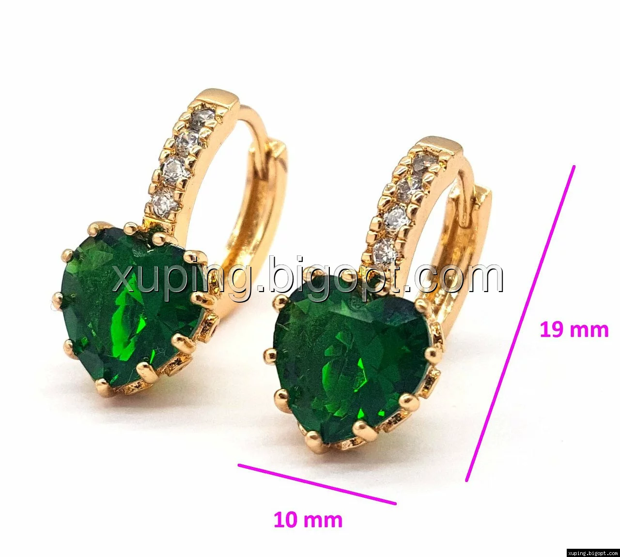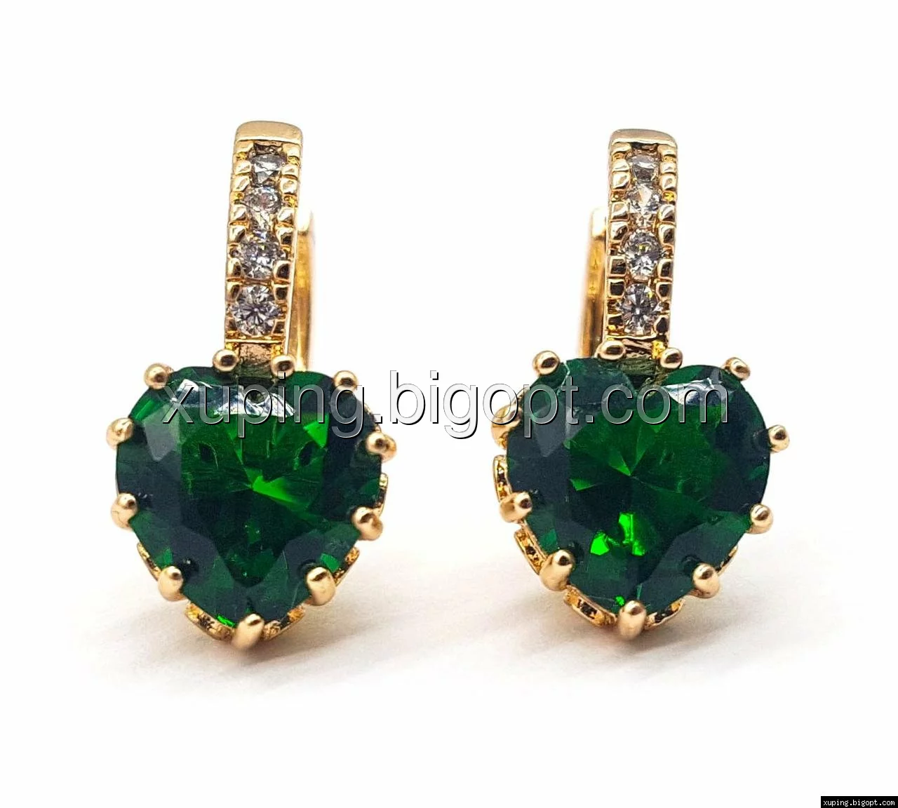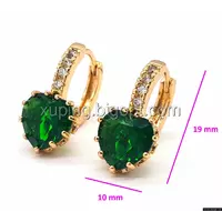 Серьги позолоченные, Зеленое Сердце, с циркония