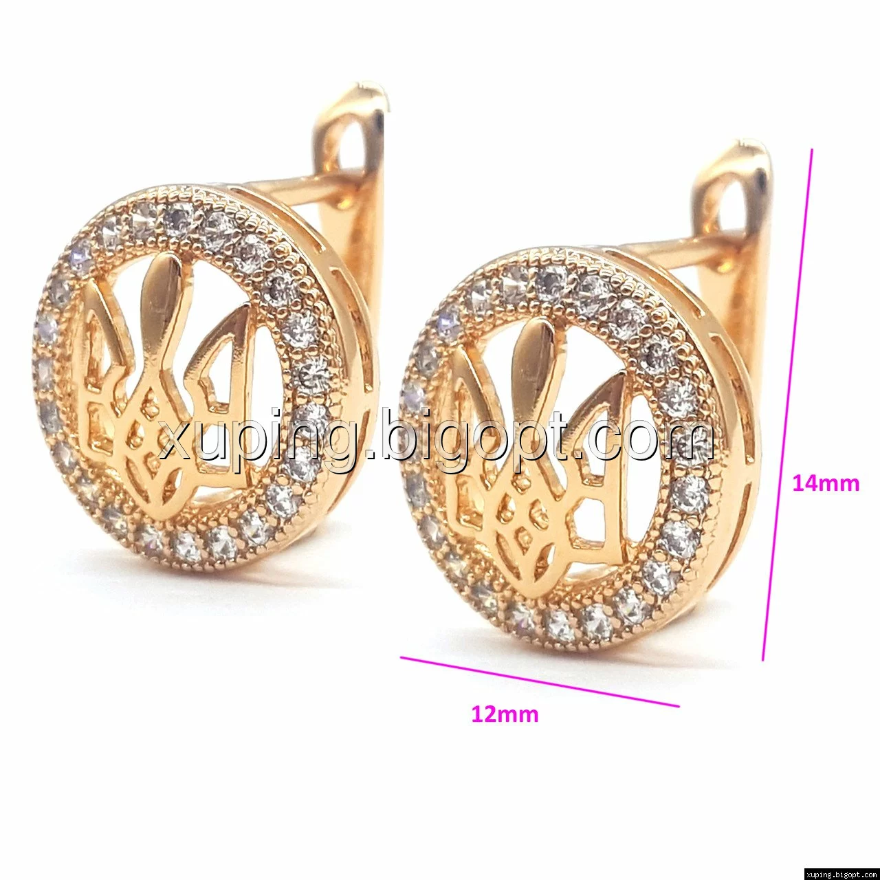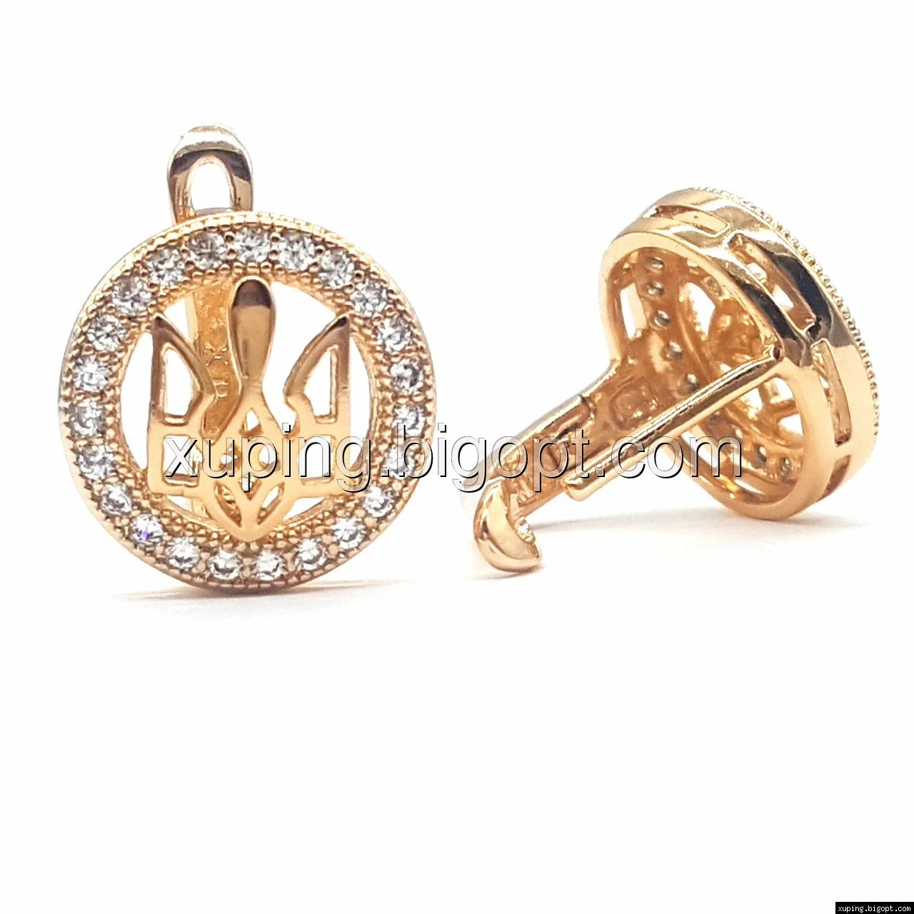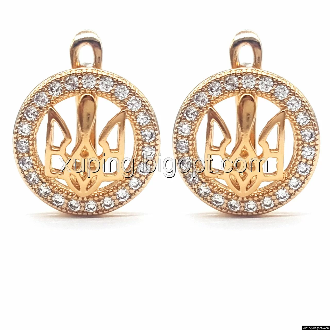 Серьги позолоченные, Герб Украины, с россыпью циркония, англ.замок