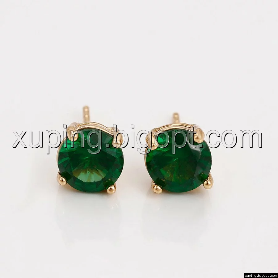 Серьги позолоченные, гвоздики с зеленым цирконием