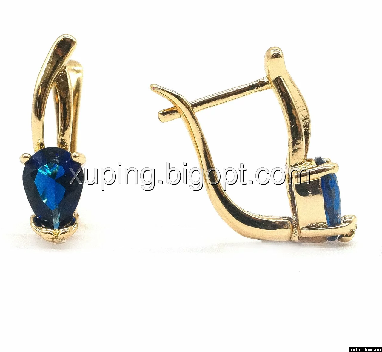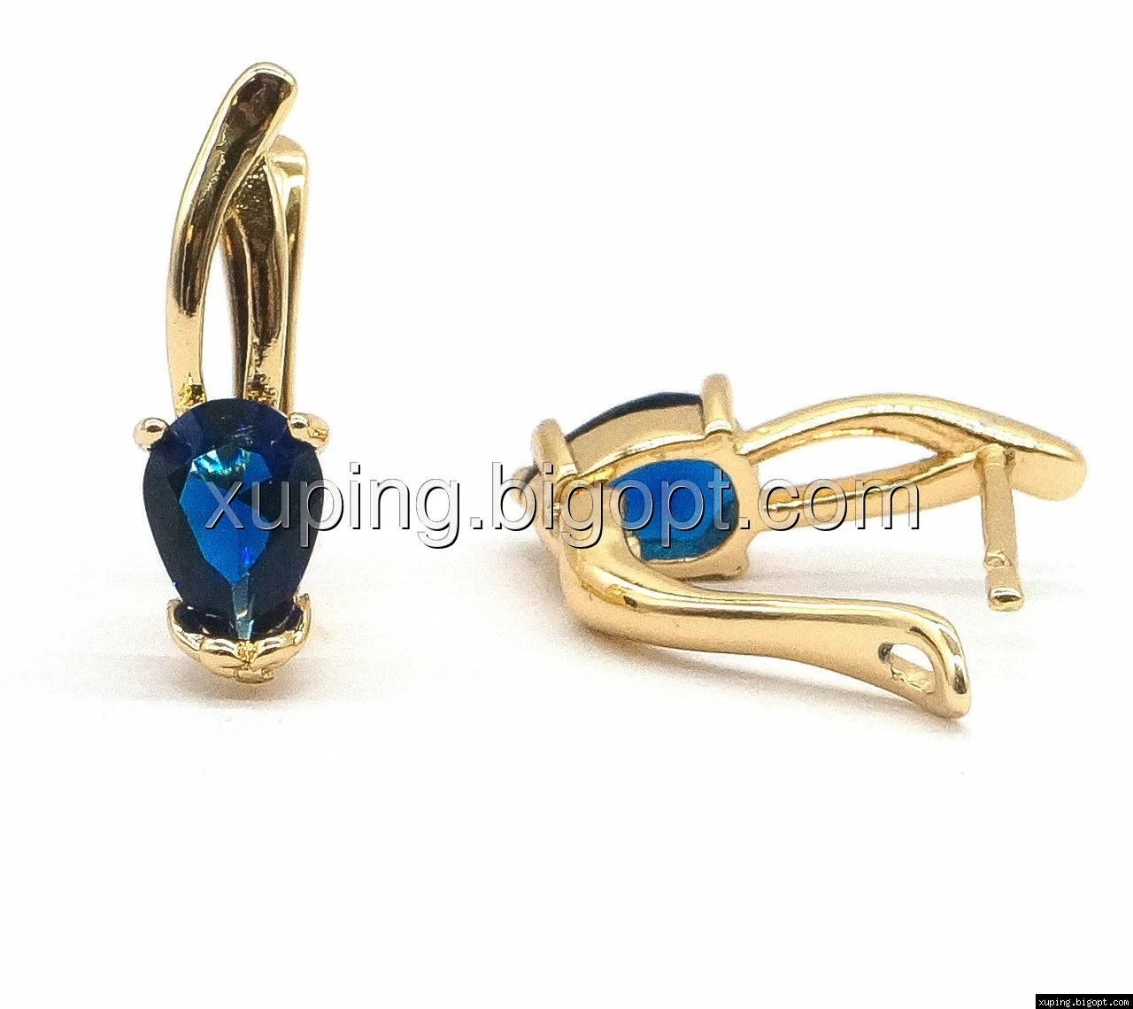 Серьги позолоченные, Капелька с синим цирконием, англ.замок