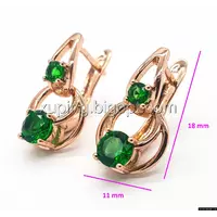 Серьги позолоченные, с зеленым цирконием, англ.замок, 14К