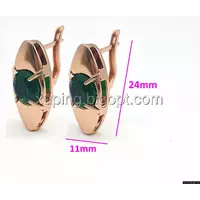 Серьги позолоченные с зеленым цирконием, англ.замок