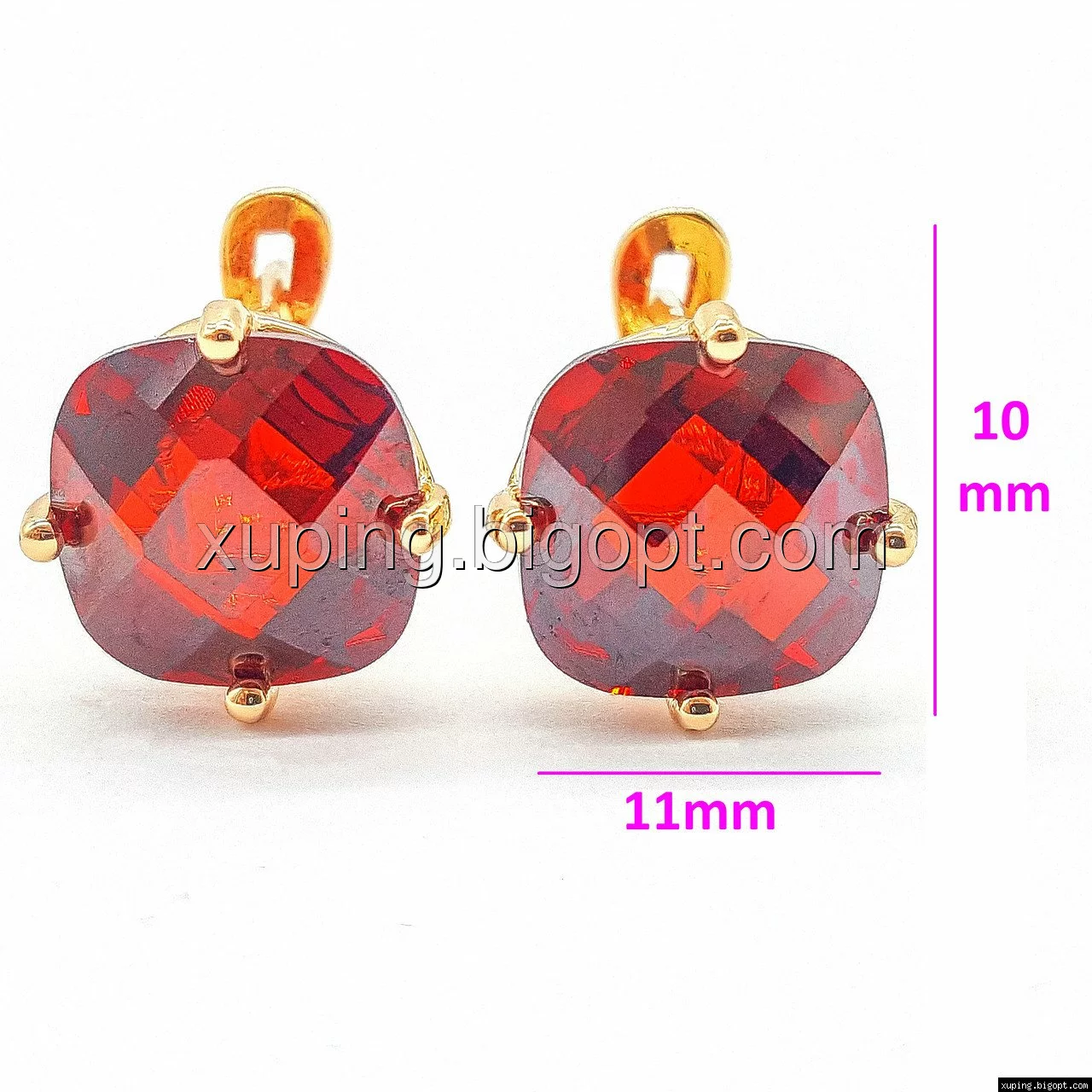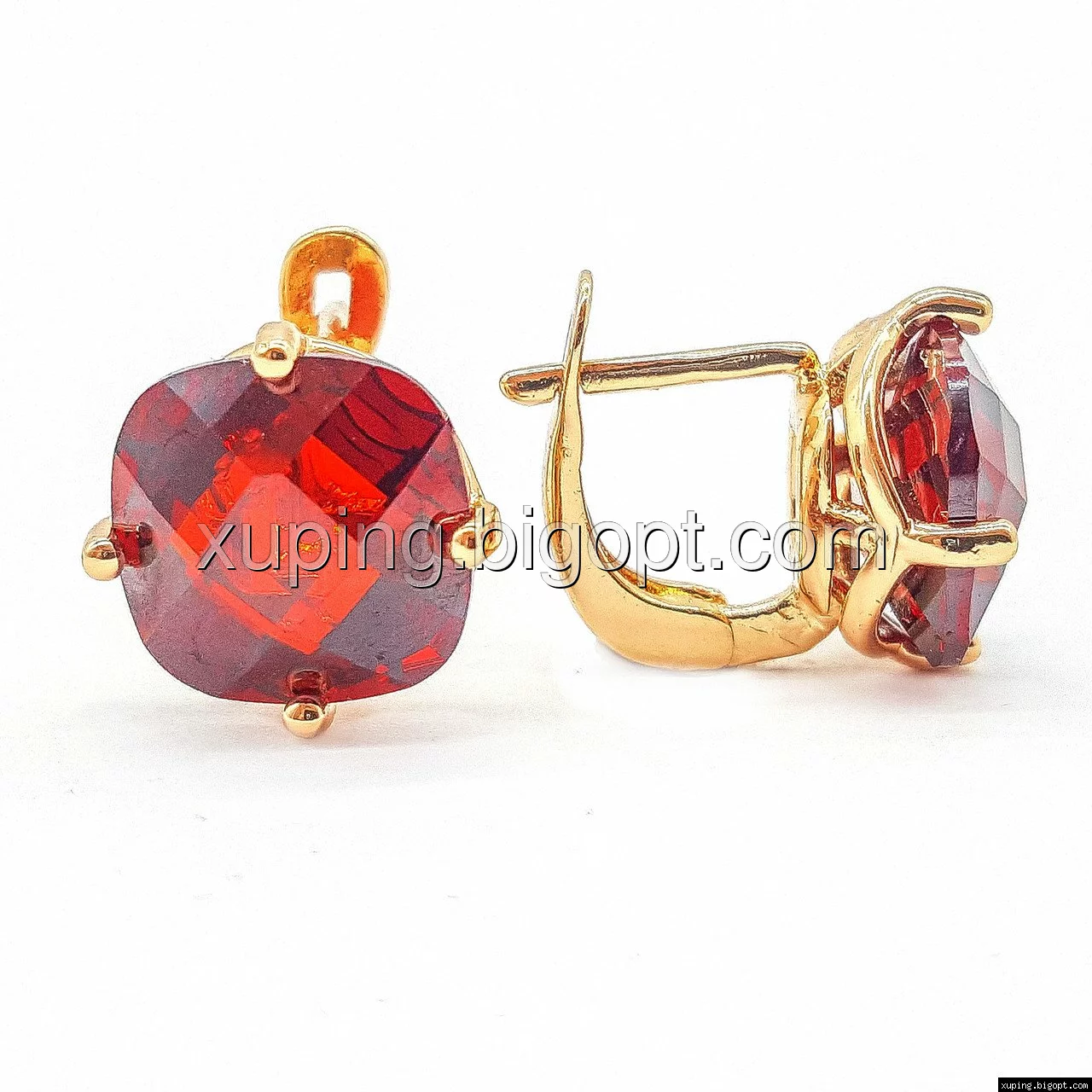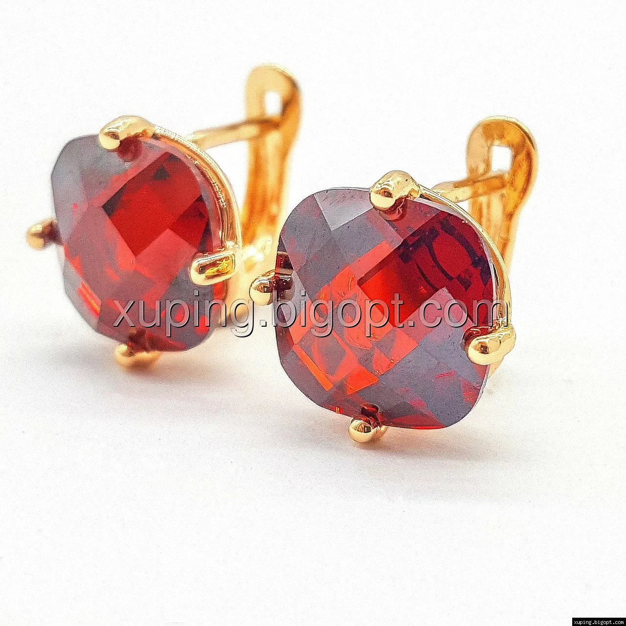 Серьги позолоченные, с красным цирконием, англ.замок