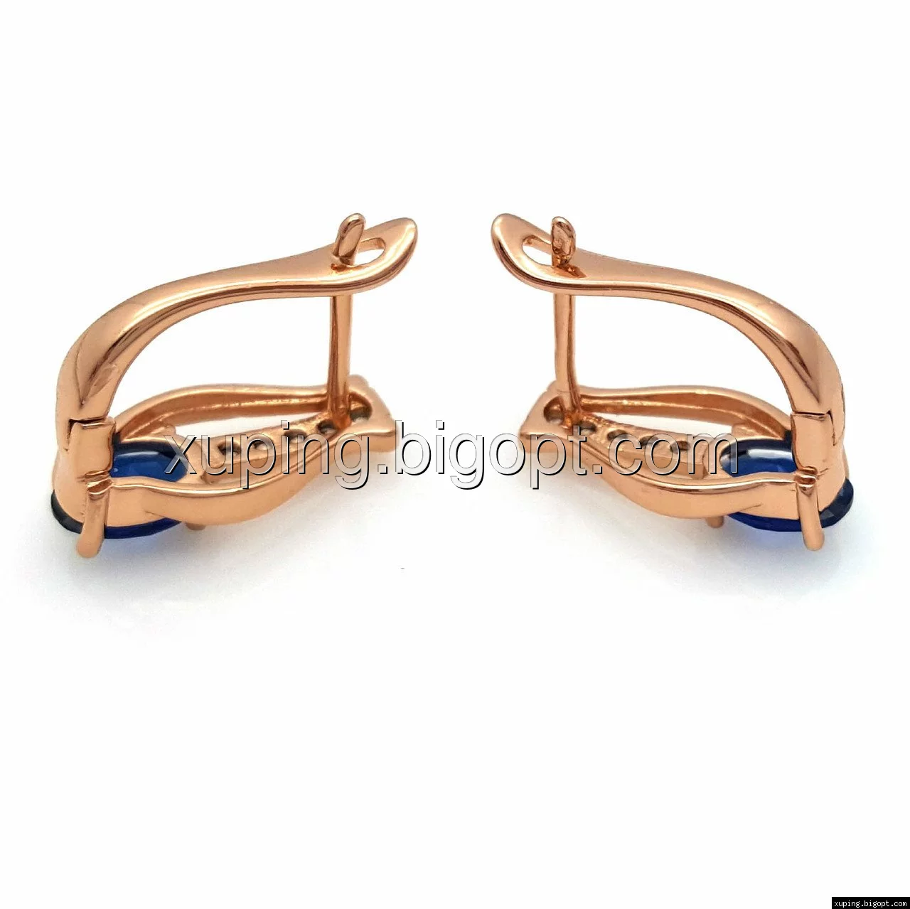 Серьги позолоченные, Синий цирконий, англ.замок, 14К