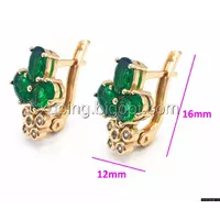 Серьги позолоченные, Три зеленых циркония, англ.замок