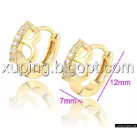 Серьги позолоченные, буква "В" с дорожкой циркония