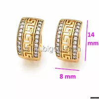 Серьги позолоченные, Две Дорожки камне с греческим рисунком