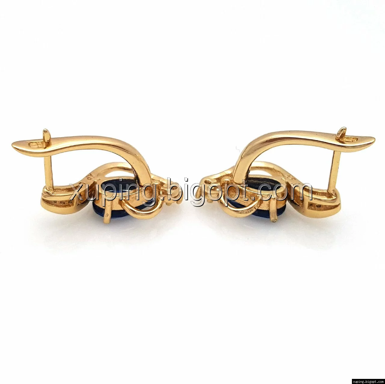 Серьги позолоченные, Завиток с Синим цирконием, англ.замок, Xuping