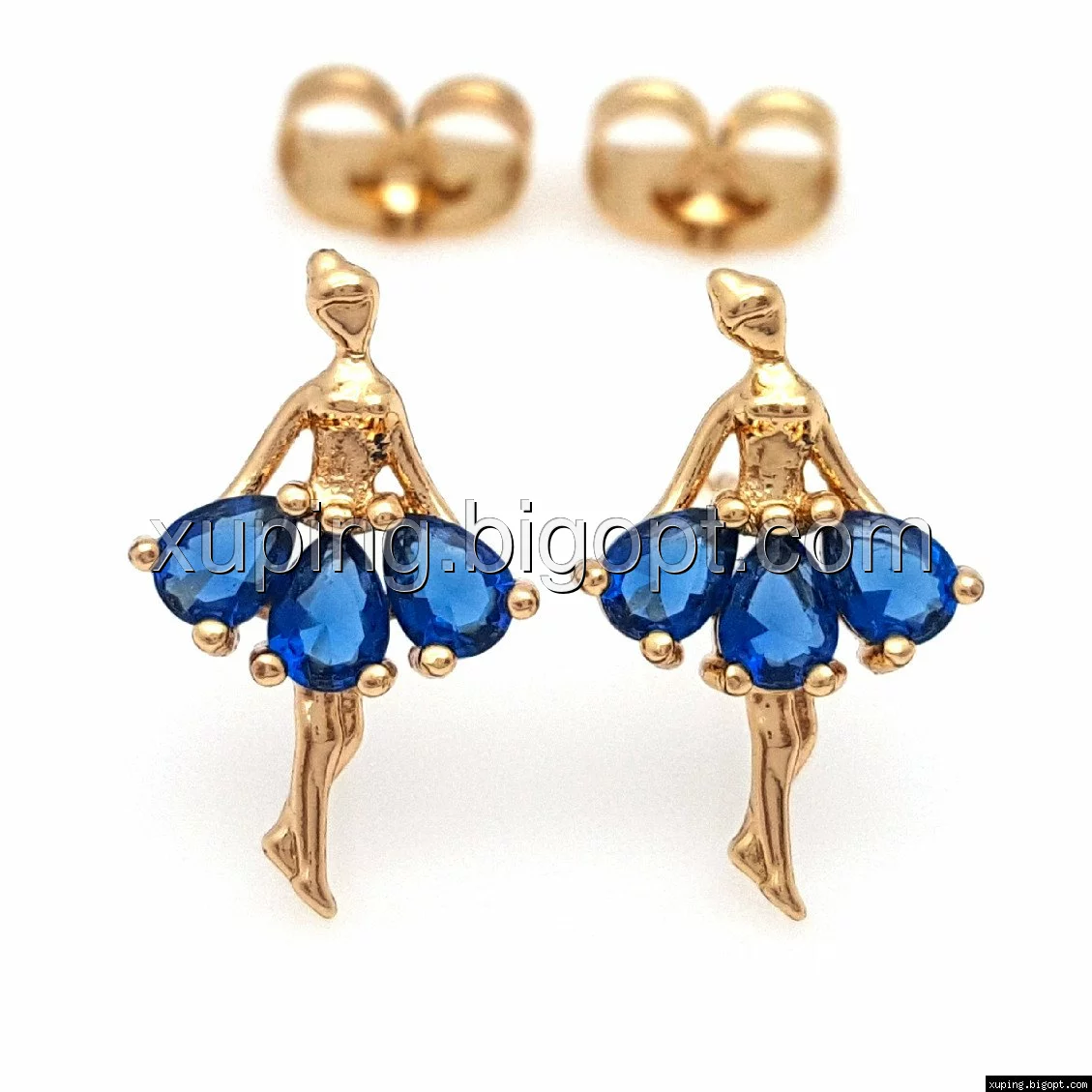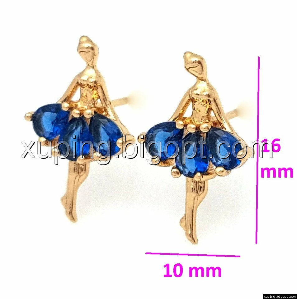 Серьги позолоченные 704719, гвоздики Балеринка с синим цирконием, Xuping