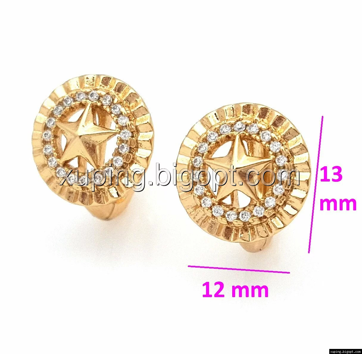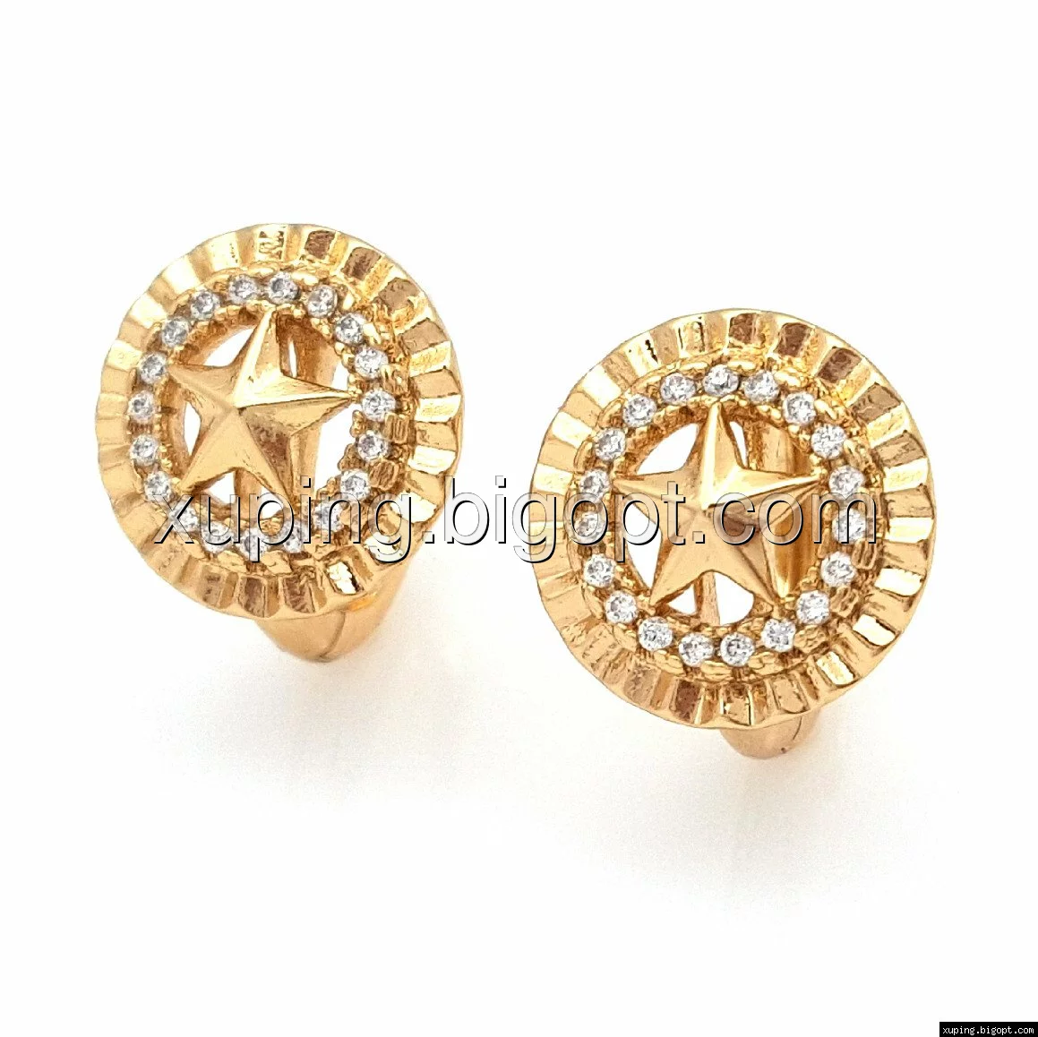 Серьги позолоченные 704729, Рельефный Круг со Звездой и камнями, Xuping