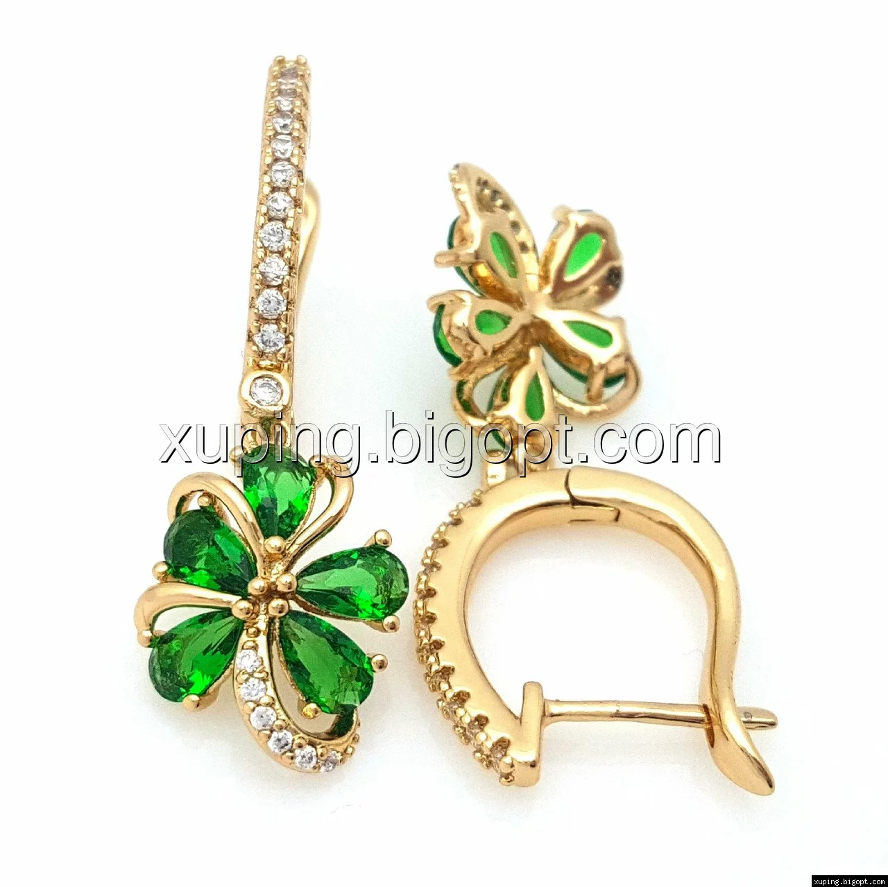 Серьги позолоченные 704740, Зеленый Цветочек, с циркония, англ.замок