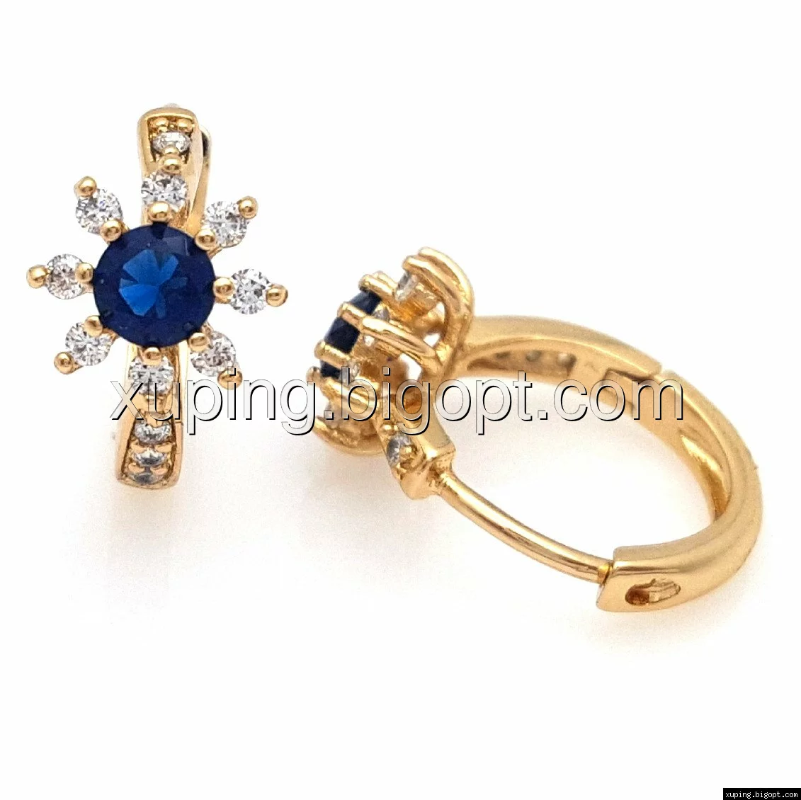 Серьги позолоченные 704760, Цветок со вставкой синего циркония, Xuping