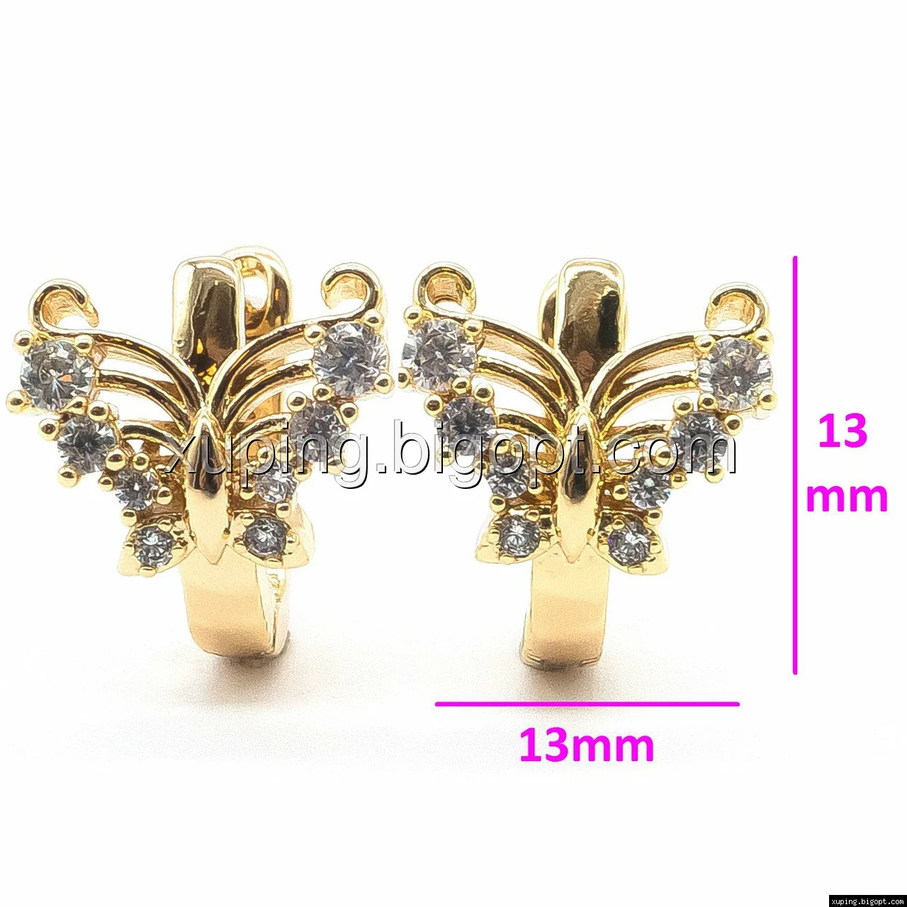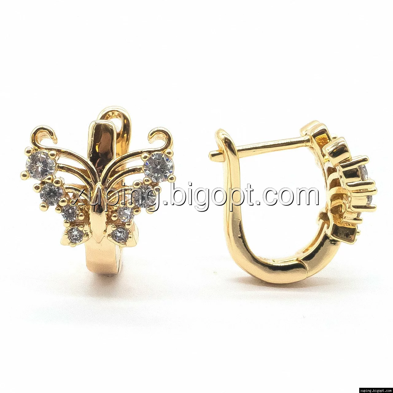 Серьги позолоченные, Ажурная Бабочка с цирконием, англ.замок
