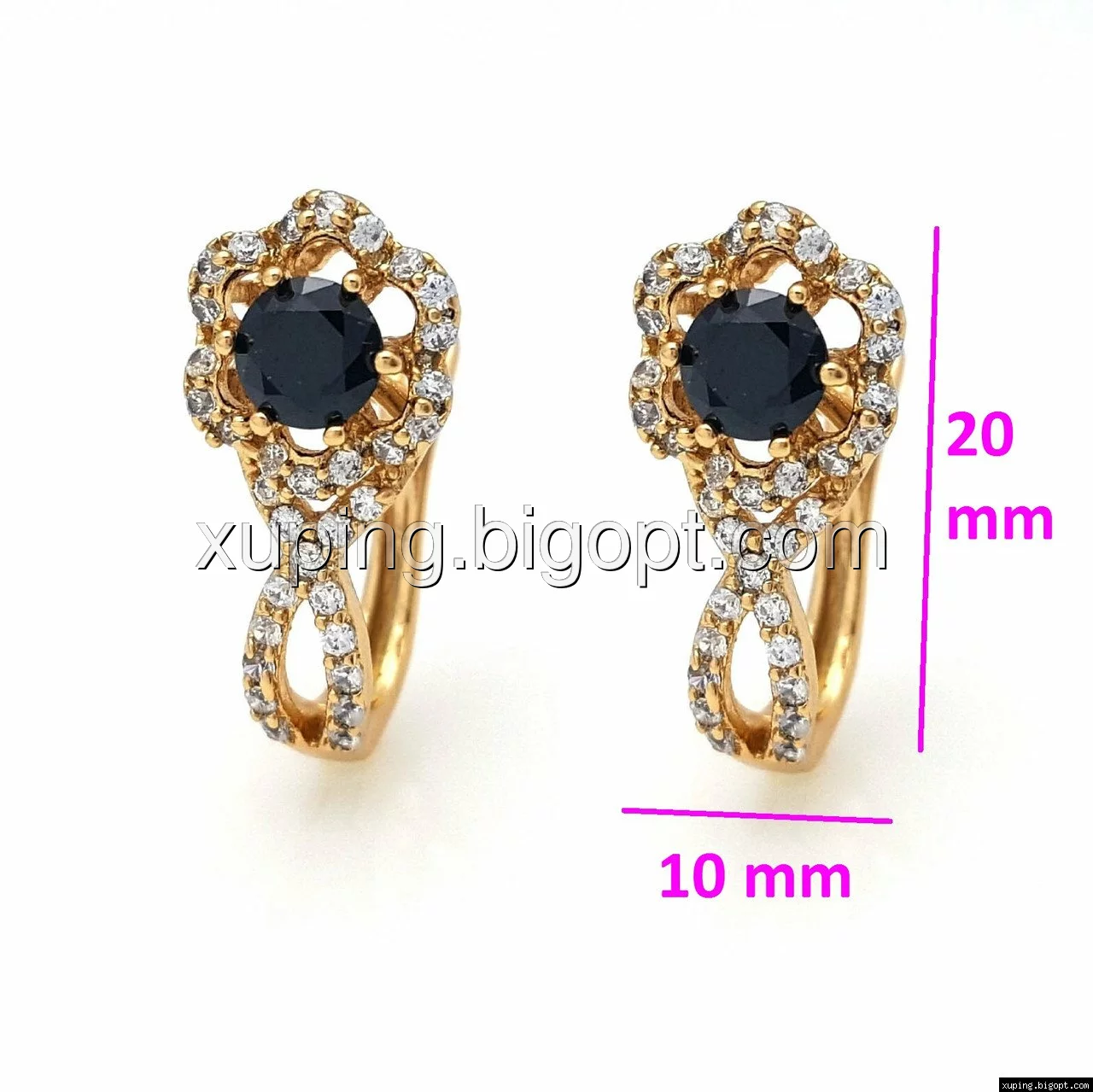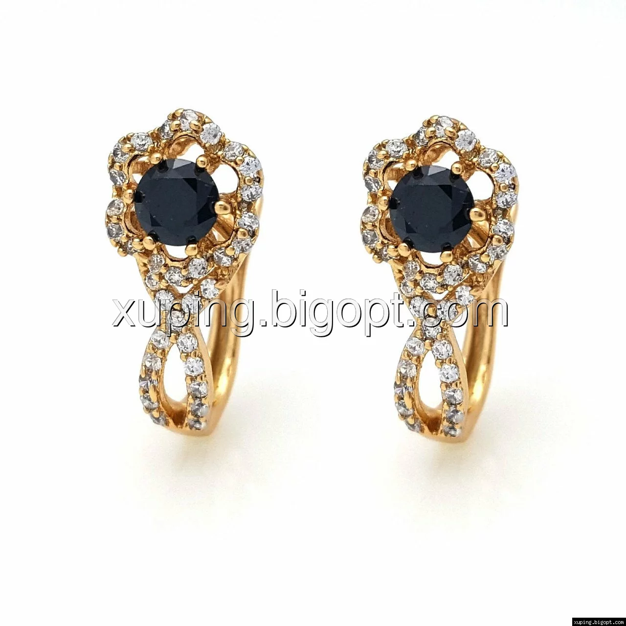 Серьги позолоченные, Ажурный Цветок с черным цирконием, англ.замок, Xuping