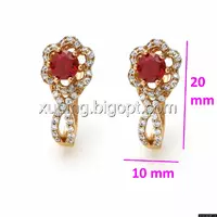 Серьги позолоченные, Ажурный Цветок с красным цирконием, англ.замок, Xuping