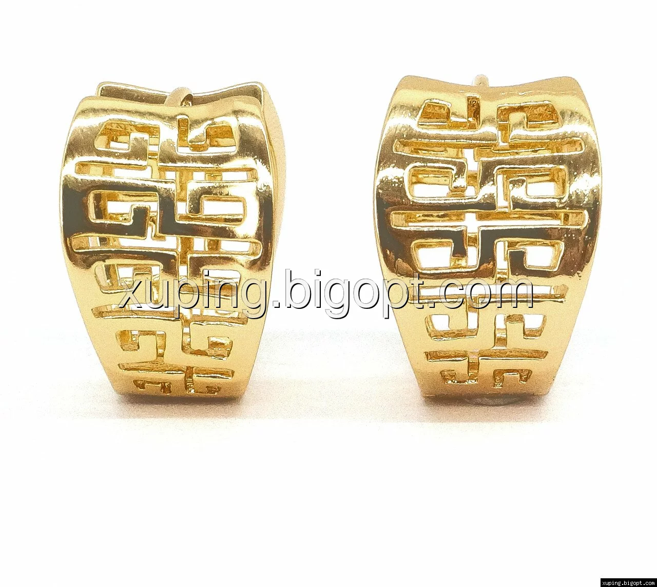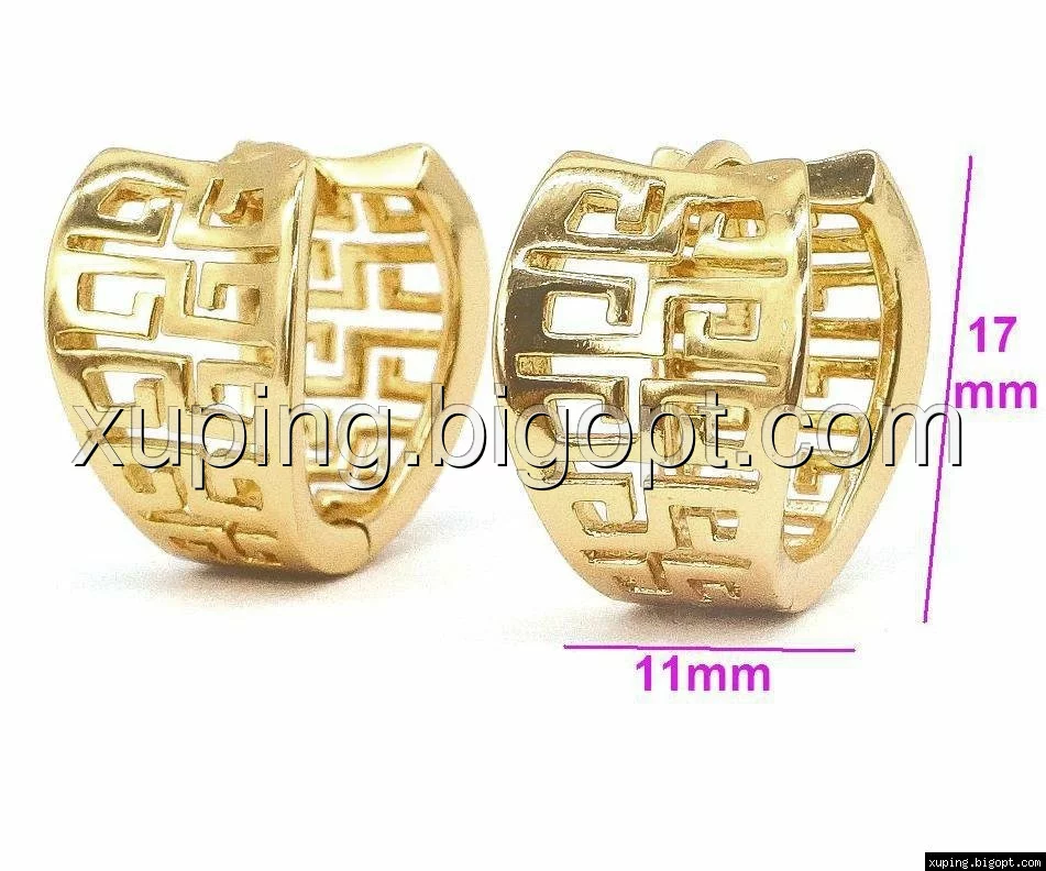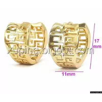 Сережки позолота Xuping, Колечка з грецьким різбленням, без камінчиків, 18К