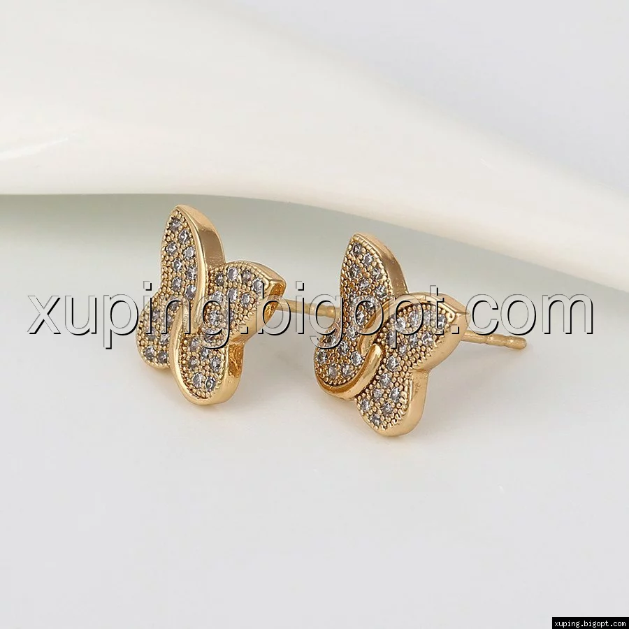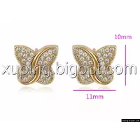 Серьги позолоченные, Бабочка с цирконием, гвоздики
