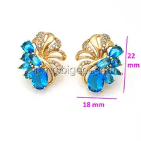 Серьги позолоченные, Большой Цветок, с бирюзовым цирконием, англ.замок