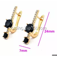Серьги позолоченные, Дорожка с черным цирконием, англ.замок