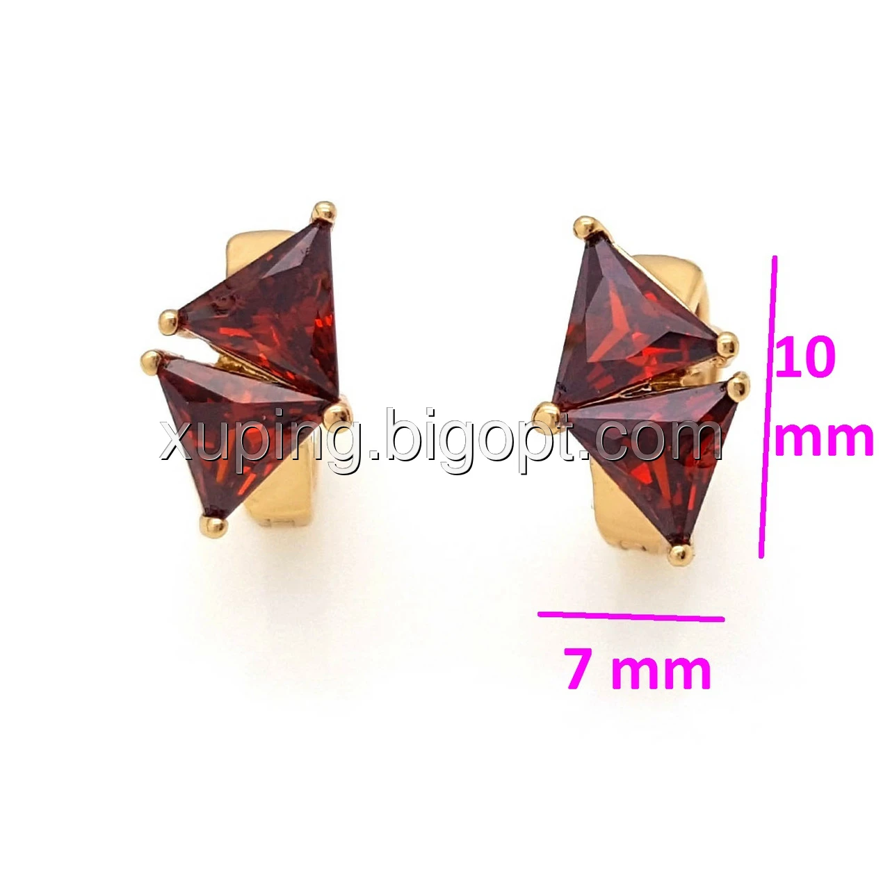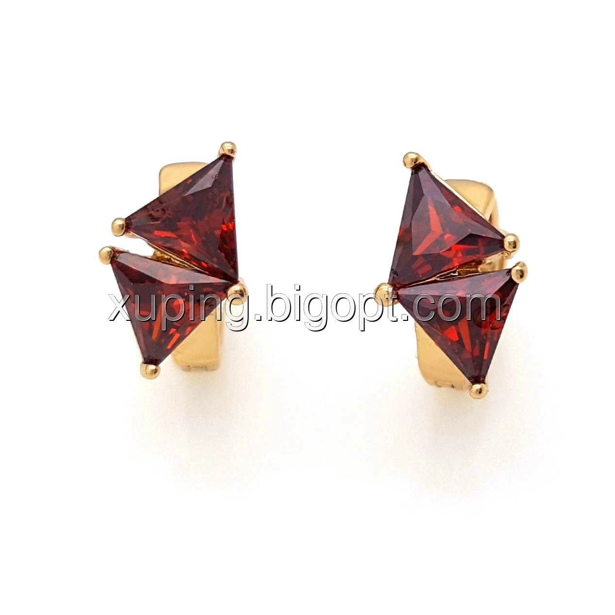 Серьги позолоченные, Два Красных Треугольника, вставка цирконий