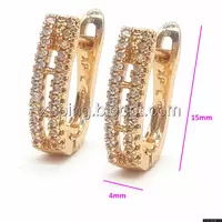 Серьги позолоченные, Две Дорожки циркония, англ.замок