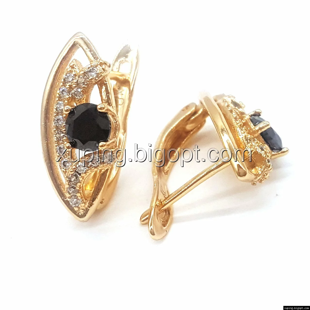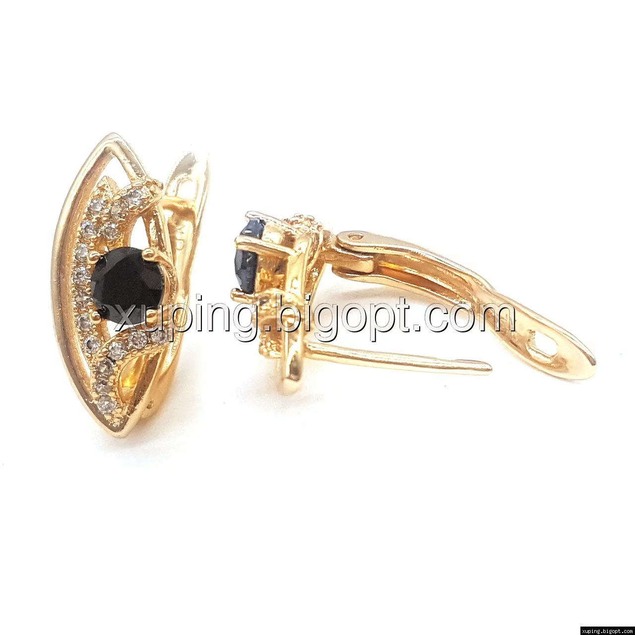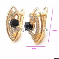 Серьги позолоченные, Классика с черным цирконием, англ.замок