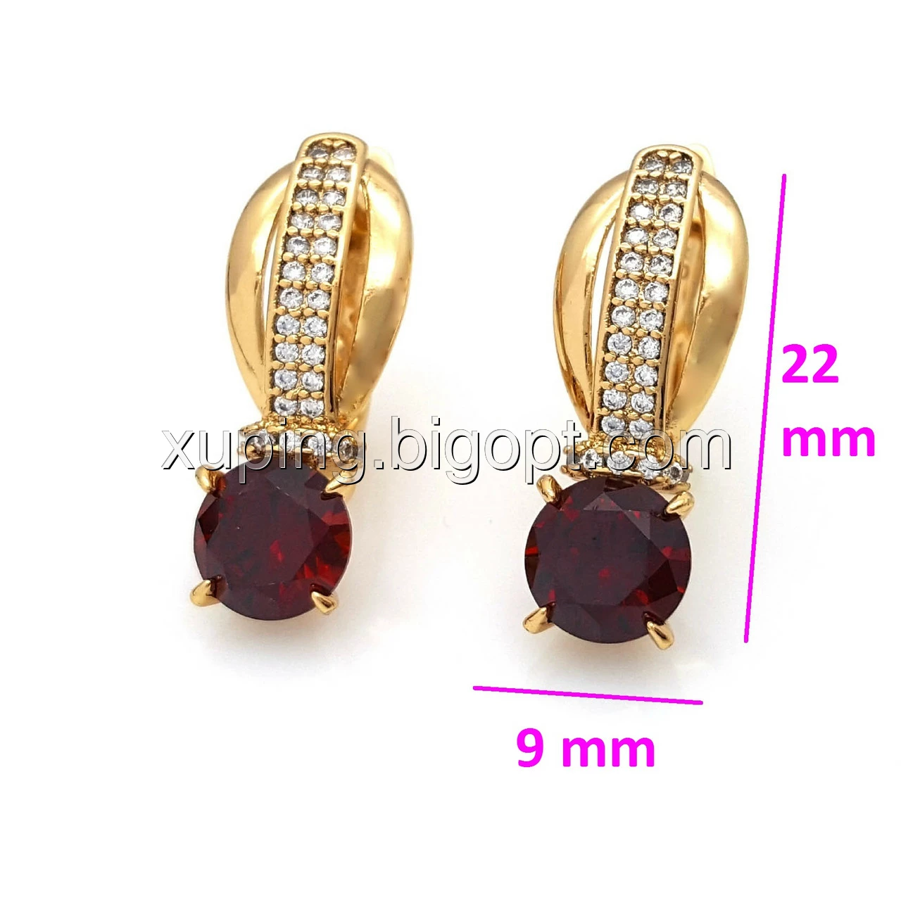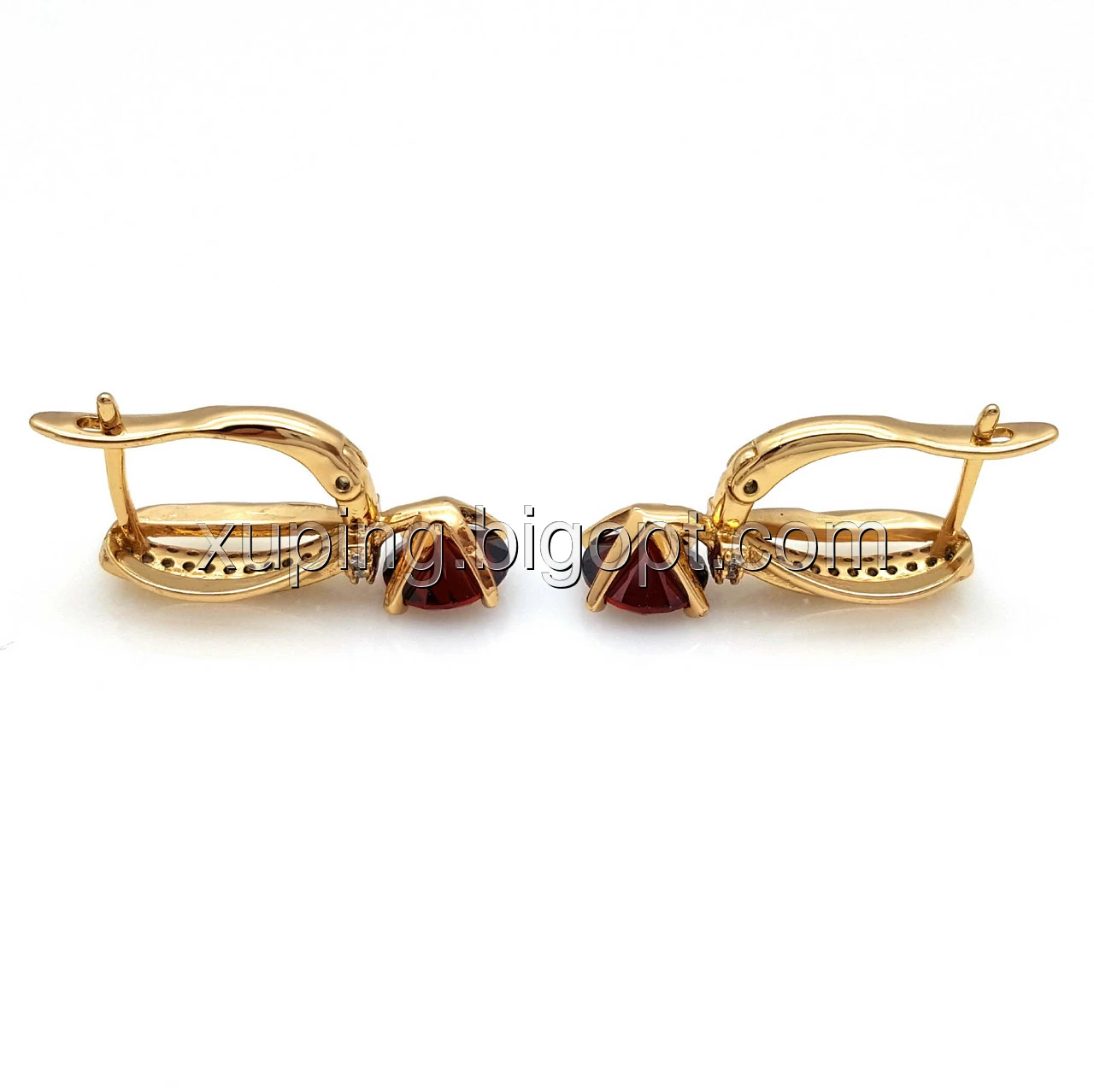 Сережки позолочені, Класика з червоним цирконієм, англ.замок, 18К