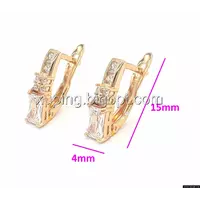 Серьги позолоченные, Классика с прямоуголным цирконием, англ.замок