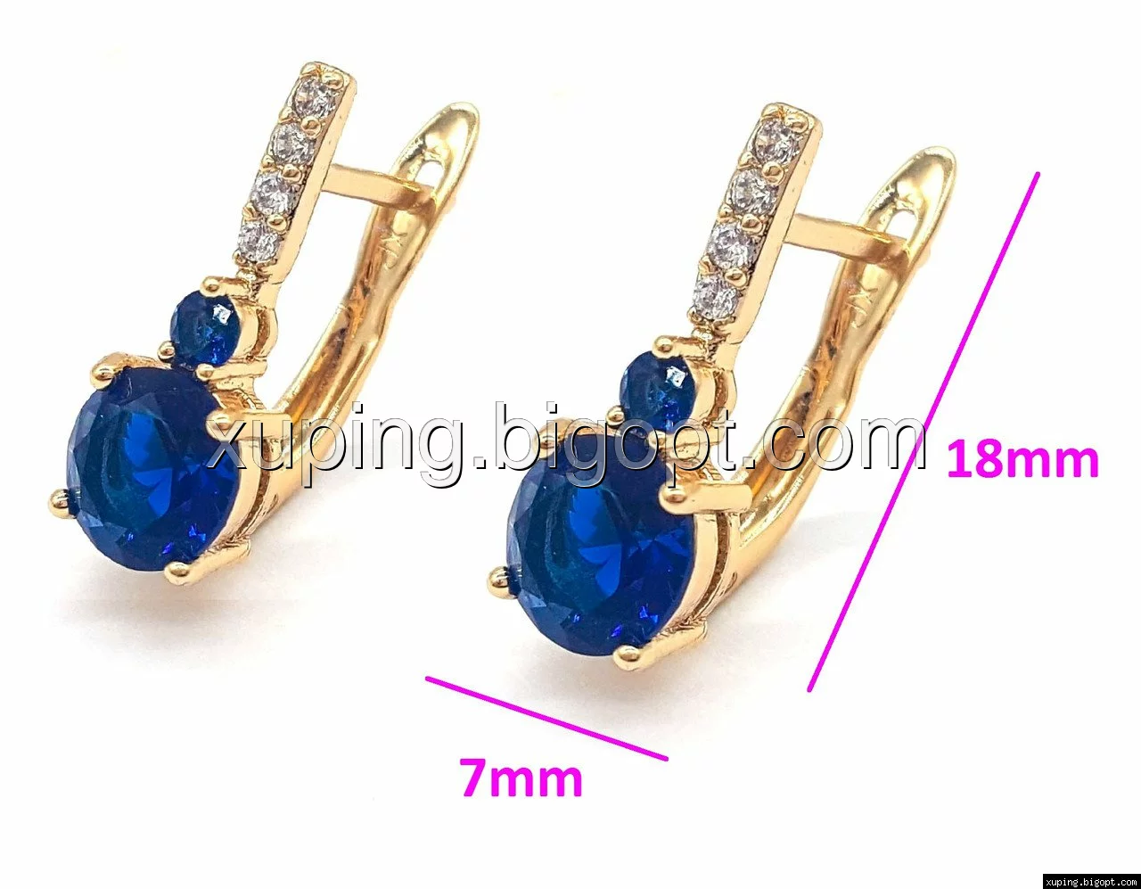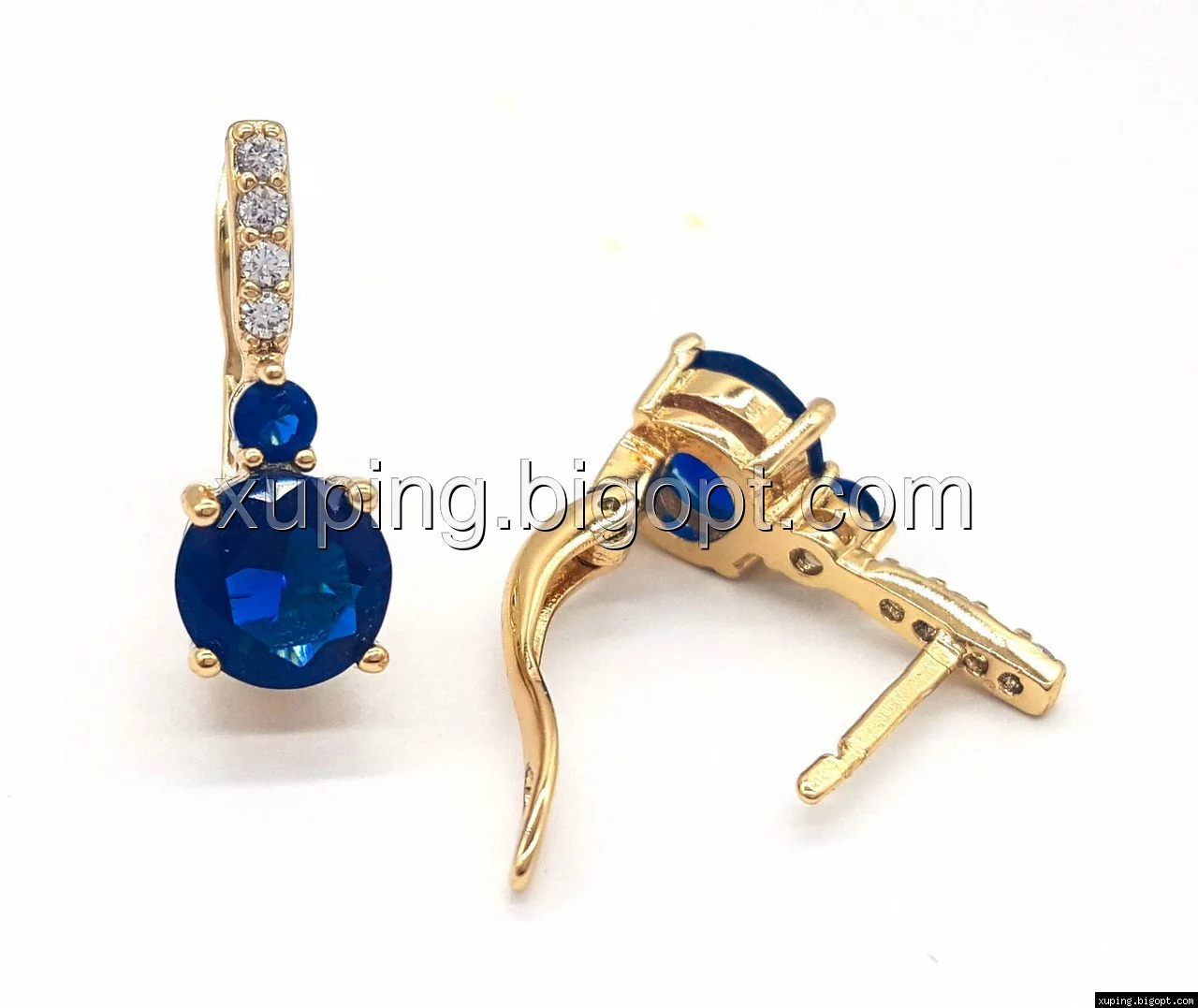 Серьги позолоченные, Классика с синим цирконием, англ.замок