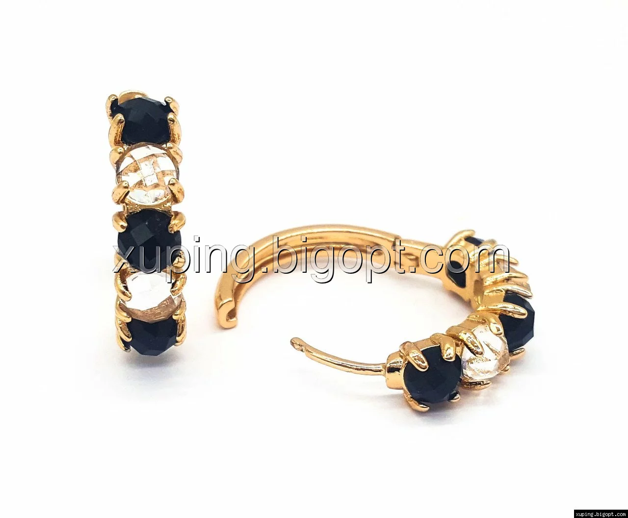 Серьги позолоченные, Колечка с черно-белым цирконием