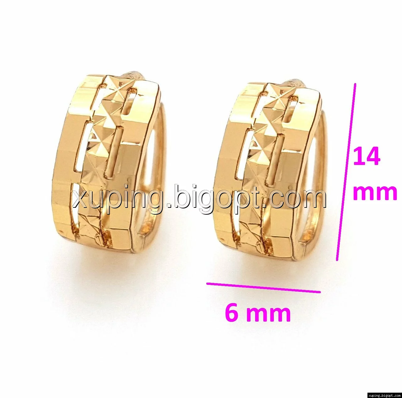 Серьги позолоченные, колечка с греческим узором, Xuping