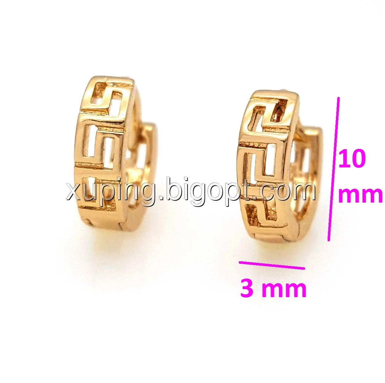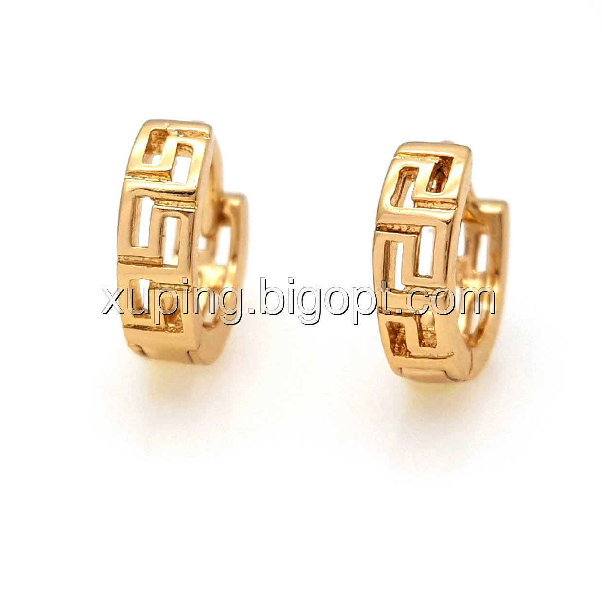 Серьги позолоченные, Кольца с греческим узором, без камней