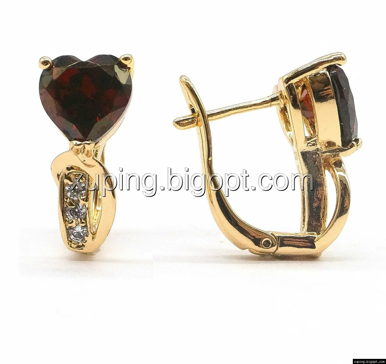 Сережки позолота Xuping, Сердце, червоний цирконій, англ.замок, 18К