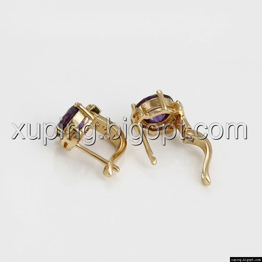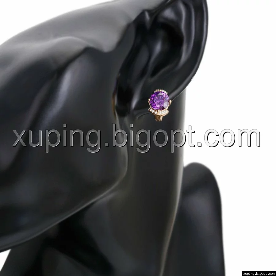 Серьги позолоченные, Круглый фиолетовый цирконий