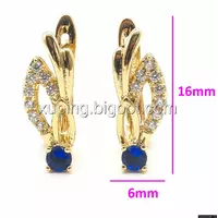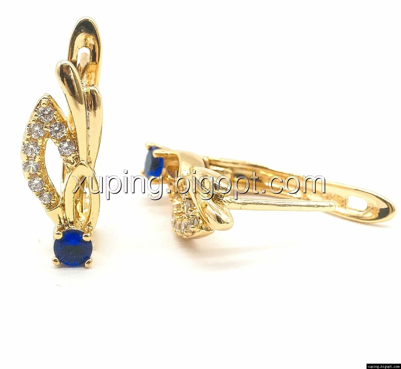Серьги позолоченные, Листик с синим цирконием, англ.замок