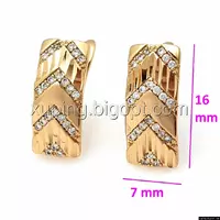 Сережки позолочені, Прямокутник з різним малюнком, і камінчиками, англ.замок,18К